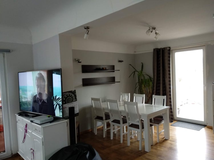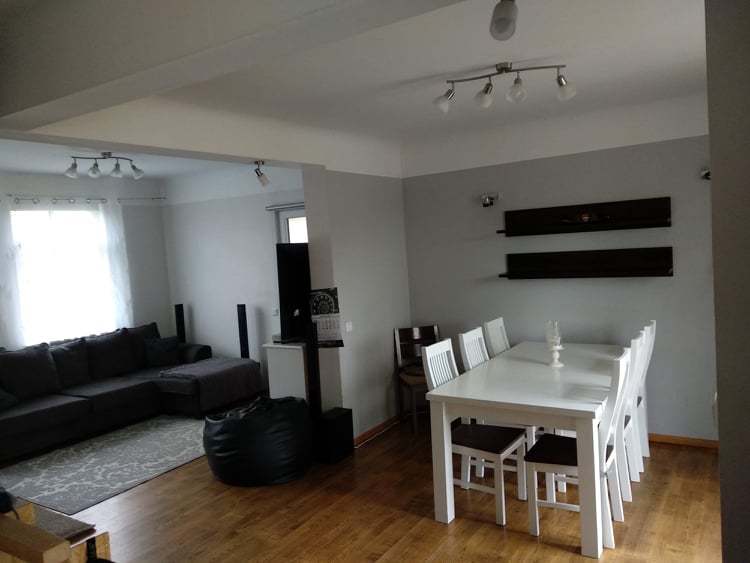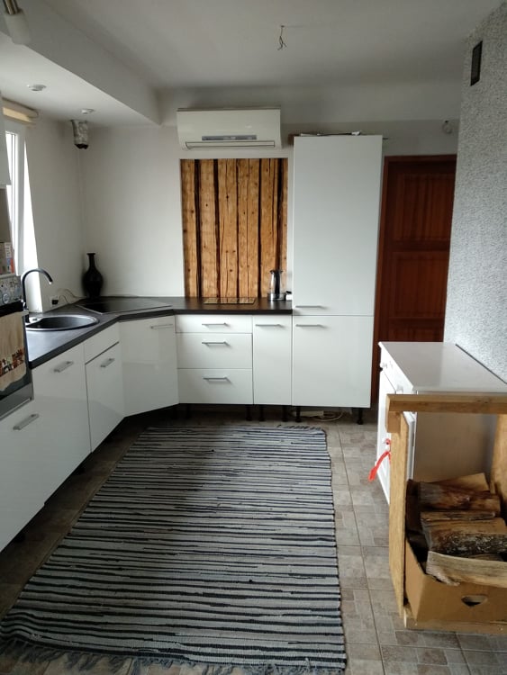 Eramaja (palkmaja) c75m2 betoon põrandate lammutus, Seinad ja laed puhastada vanast kattest (kips). Kamina välja lõhkumine, ühe fibo seina klaasidega (pilt nr 4) täielik eemaldamine ja 2 seina sisse ava tegemine.Ühele seinale vaja panna toe post mis kunagi eemaldatud. Vee ja kanalisatsioon vaja vedada uude kohta kui põrandad on lammutatud. Põrandad pärast soojustada 2x100mm EPS100, panna põranda kütte torustik ja taastada betooniga.
