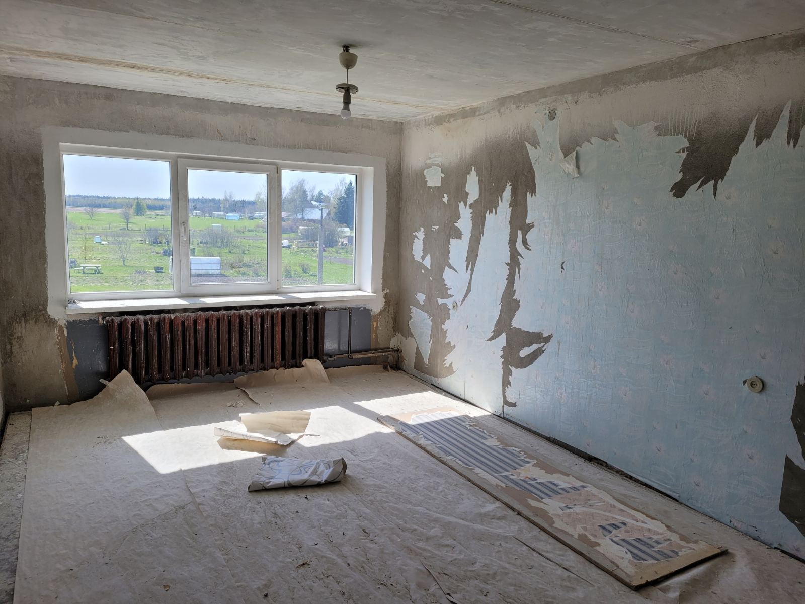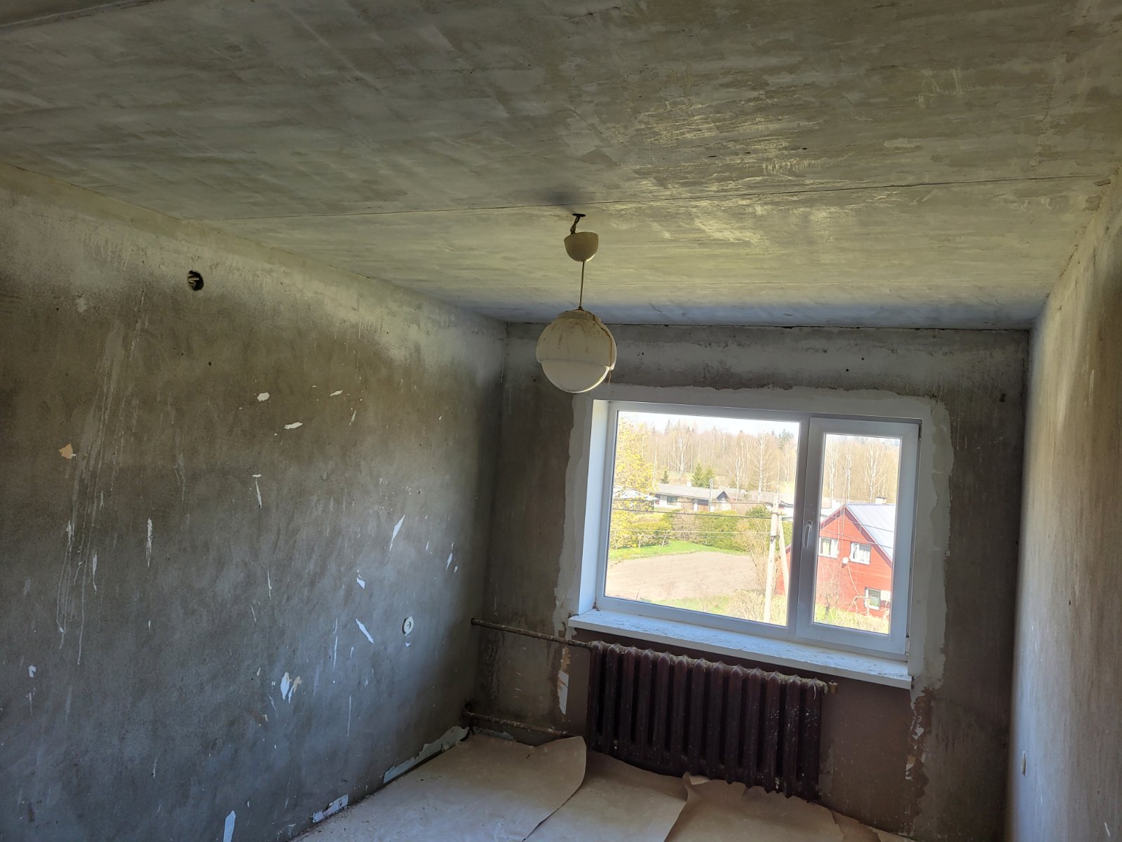 4-toalise korteri remont, laed pahteldada, värvida, tubade seinad pahteldada, värvida, köök pahteldada, värvida. Põrandale laminaat. WC ja duzziruum pahteldada, osaliselt plaatida ja värvida. Santehnika paigaldus. Korteri suurus 98m2.