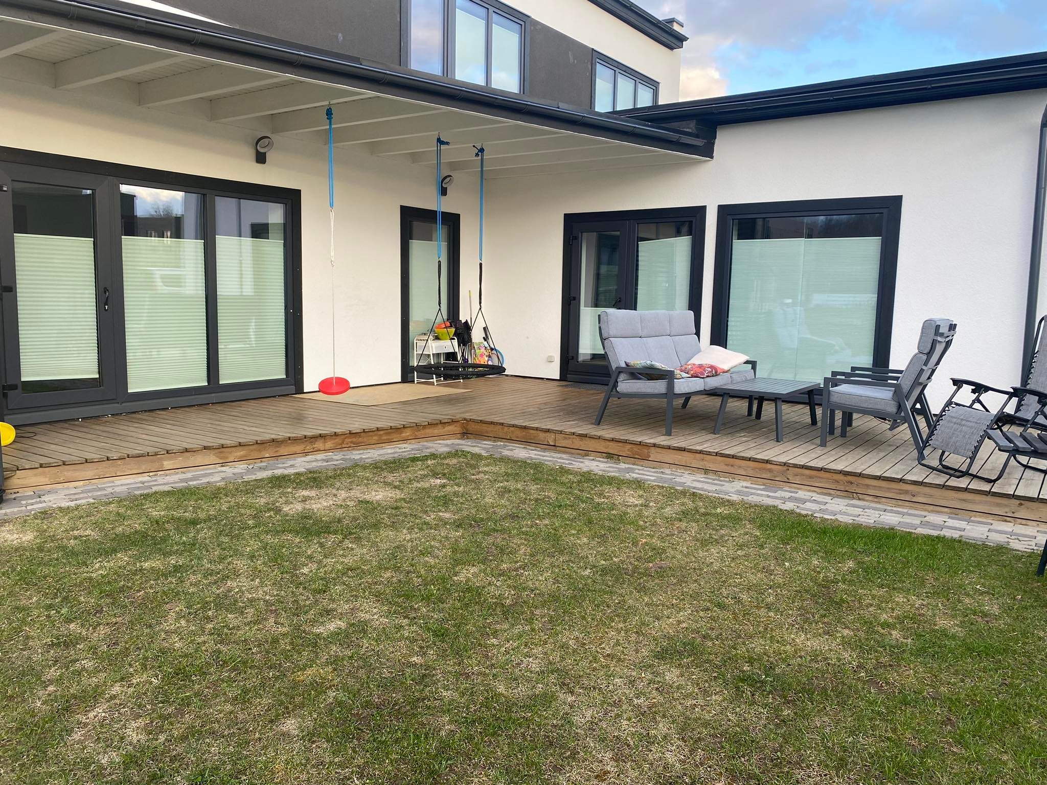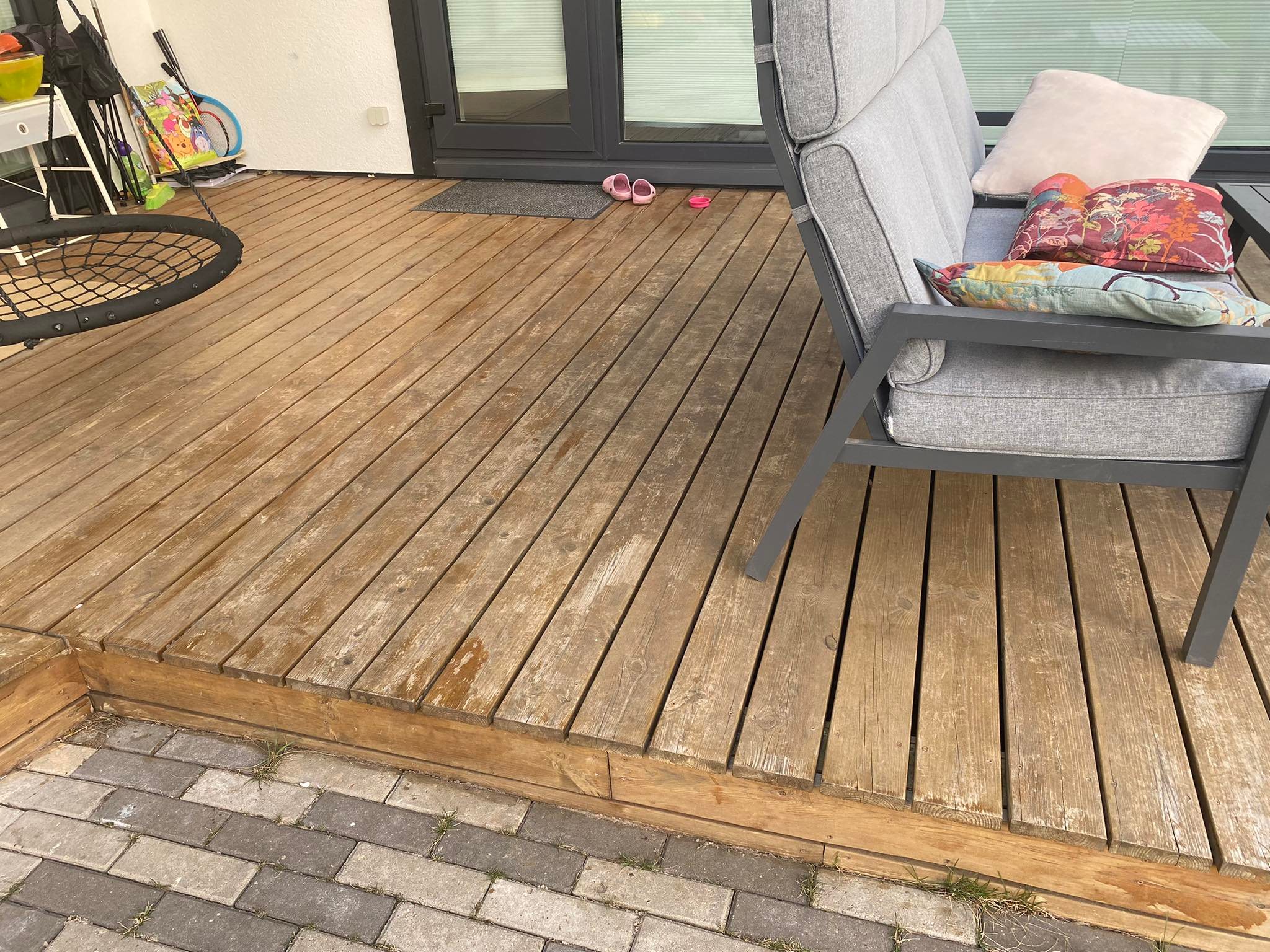 Terrassi süvapesu ja vanast toonist puhastamine Piontexist. Uue tooniga õli peale kandmine.