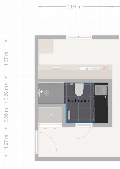 Ruumi suurus tuleb ca 4m2, umbkaudne joonis lisana kaasas. Seinte mõõtmed võivad ehituse käigus mõningal määral muutuda (nt. duššinurga suurus), aga mitte oluliselt.
