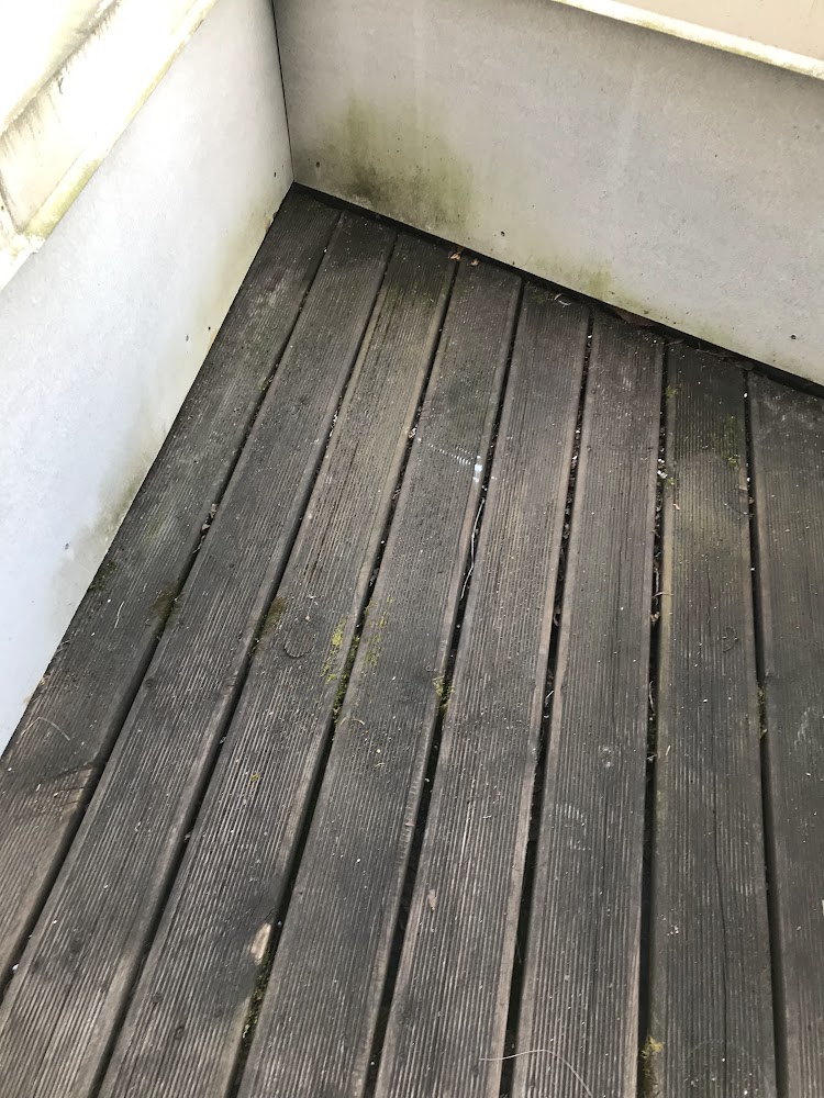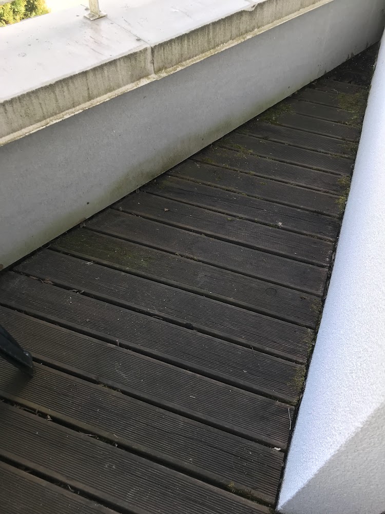Lisaks väiksel kolnurksel rõdul vahetada terrassilauad. (ca 1,6 x 3,1 x 3,6)