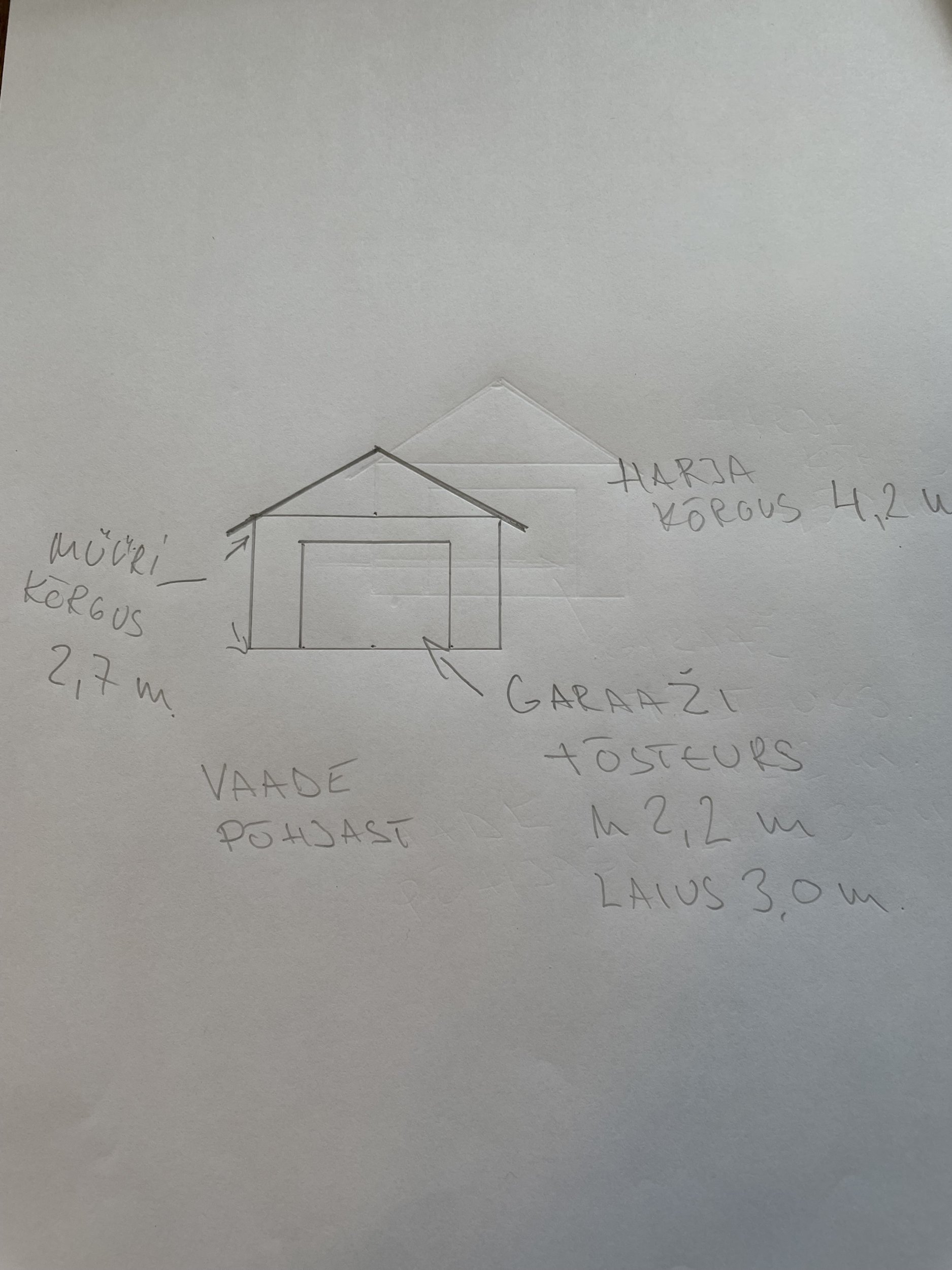 Soovin ehitada garaaži ja vaja ehitusteatis ja -projekti. Lihtne garaaž 5x7 m.