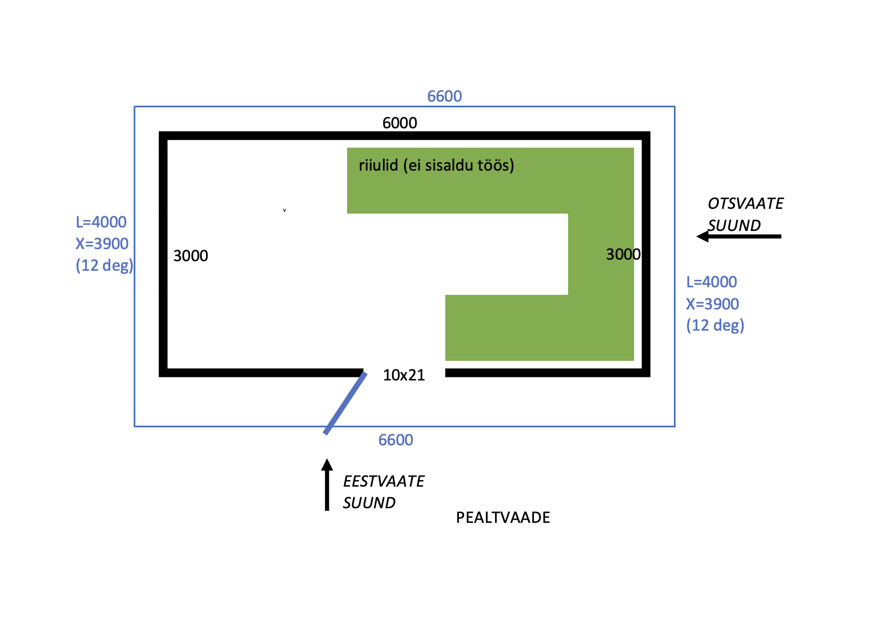 * Katusele soovin paigaldada päikesepaneelid, mistõttu on katuse mõõdud ja kaldenurk olulised (et mahuks ära 12 paneeli).