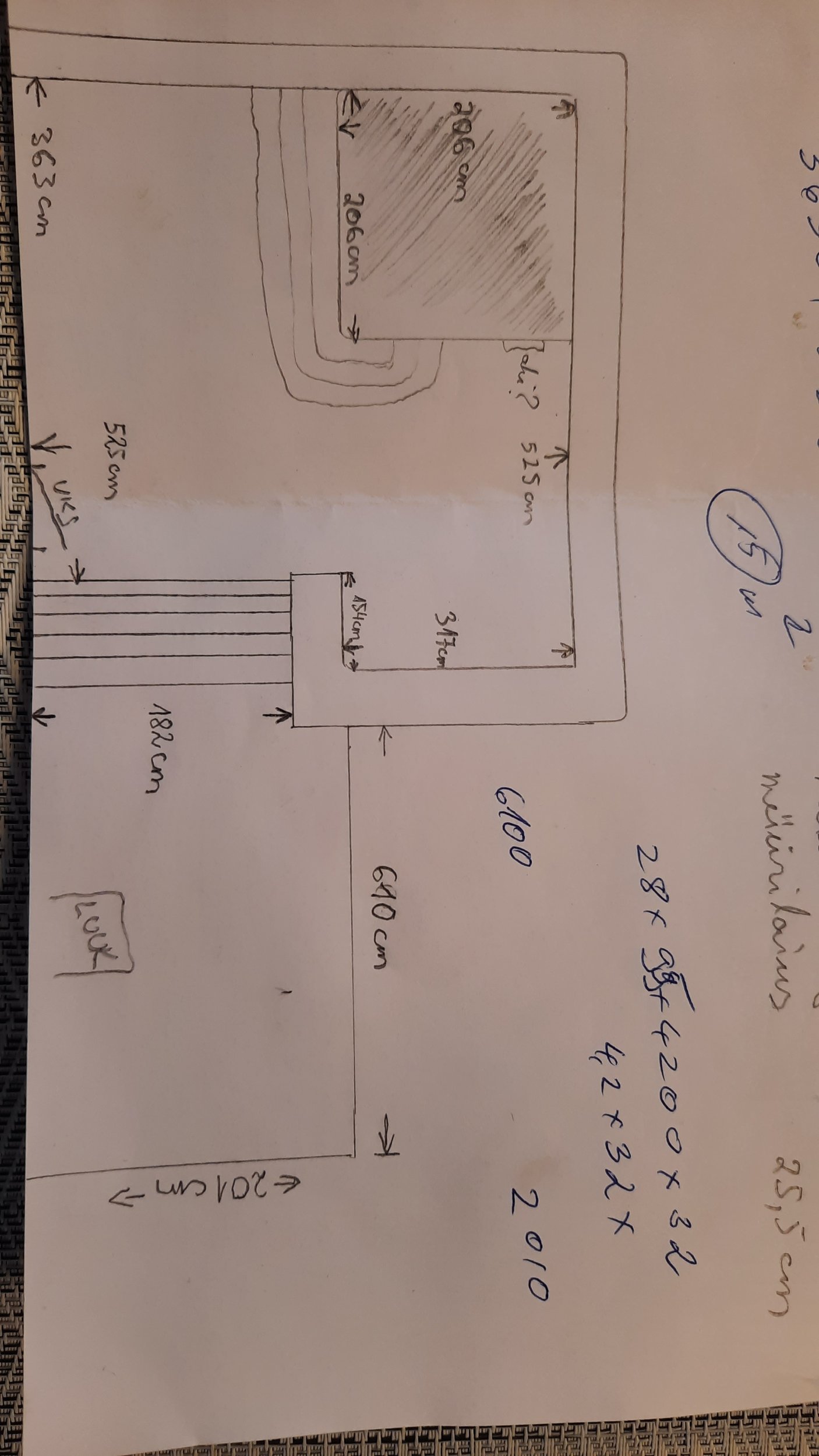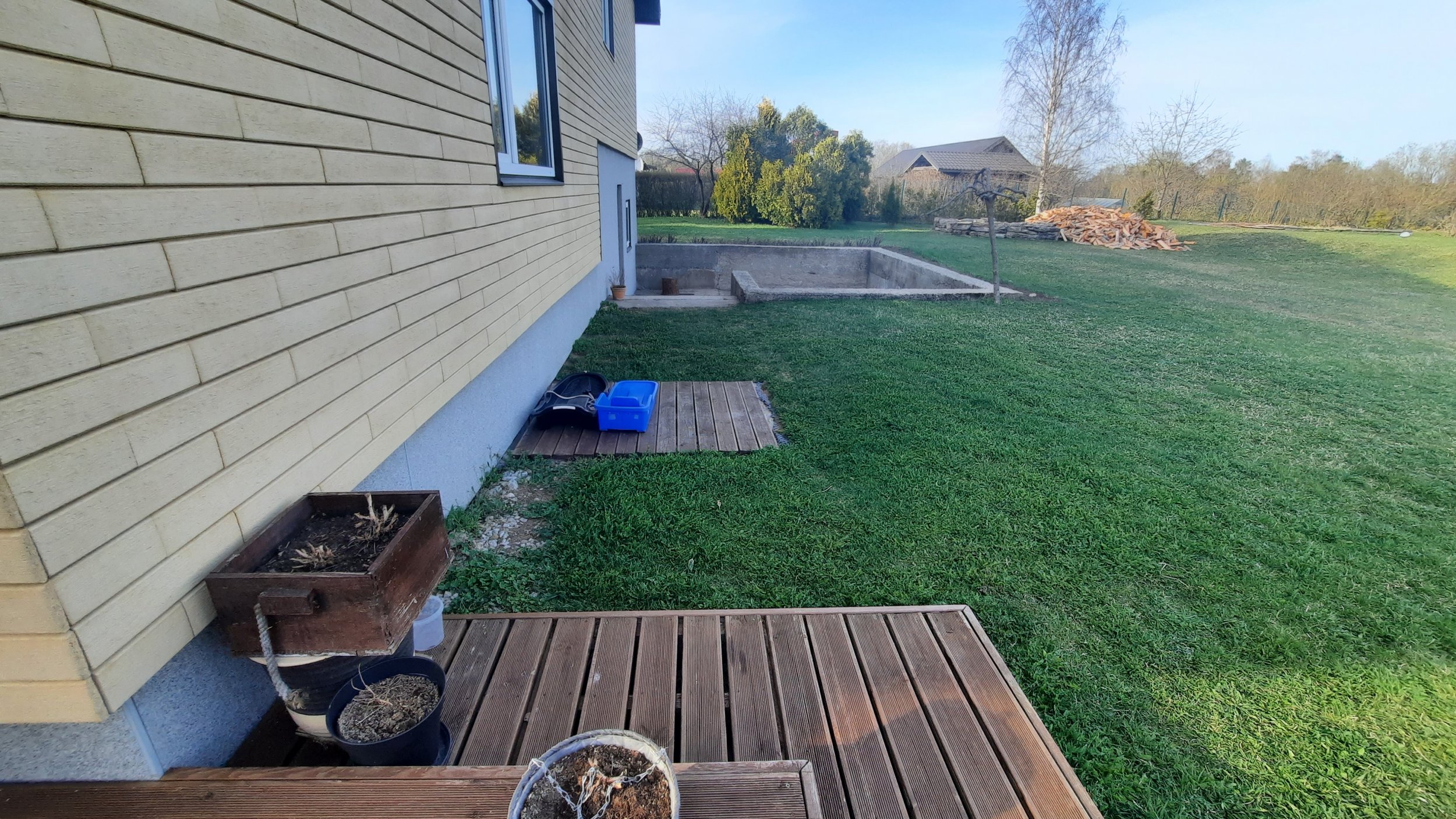 Terrassi ehitus ja kümblustünni integreerimine. Piltidel olev betoon osa (põranda pind läheks laudise alla). Terrassi jätkaks olemas oleva terrassi küljest. Manusesse lisatud ka esialgne skeem. Kümblustünni terrassikomplekt tellija poolt.
