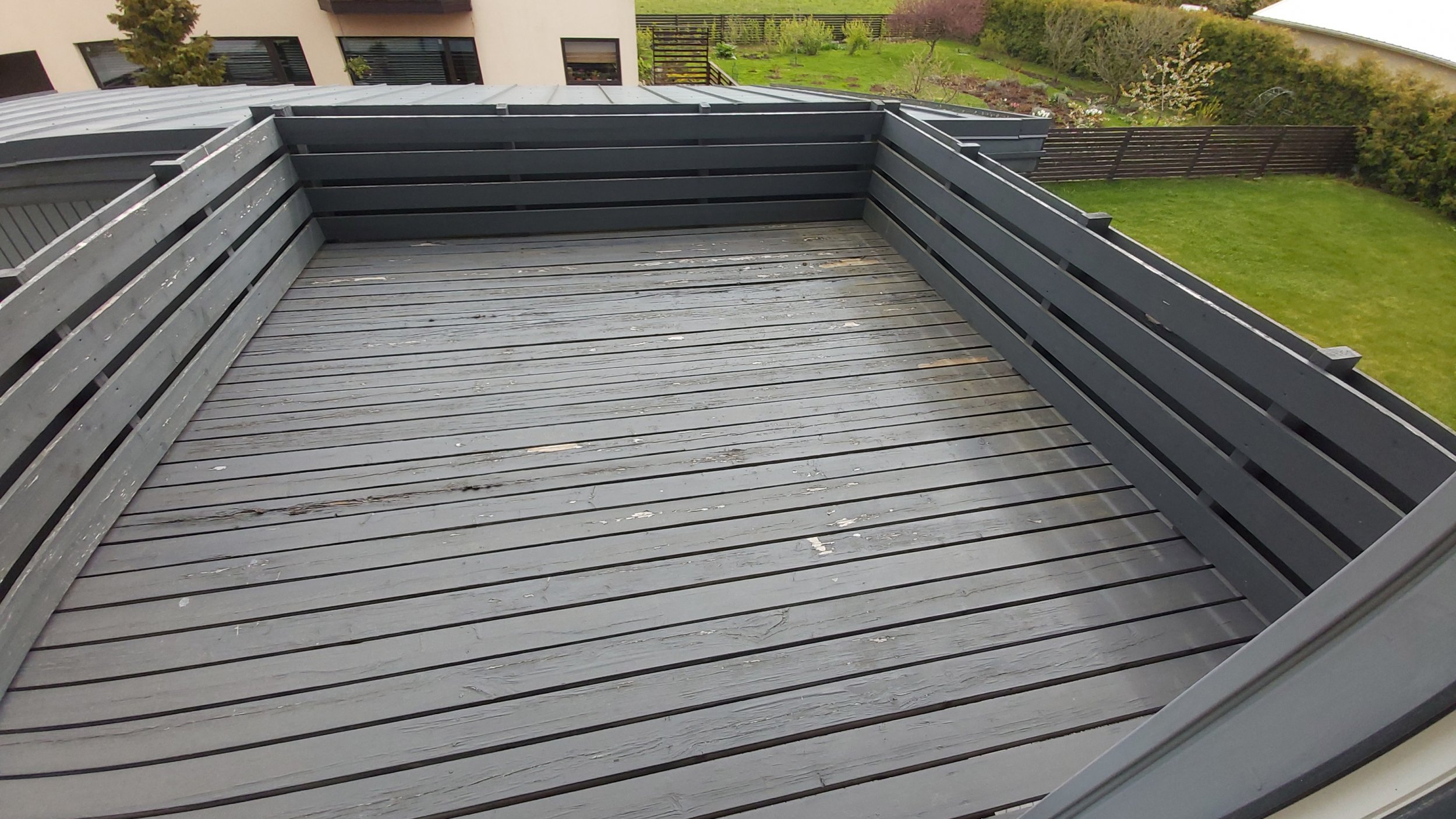 Pakkumine sisaldab vana terrassi lammutamist ja utiliseerimist, uue ehitamist koos materjaliga prussideks 45x95x3000mm. Prusside immutamist ja 2x värvimist.