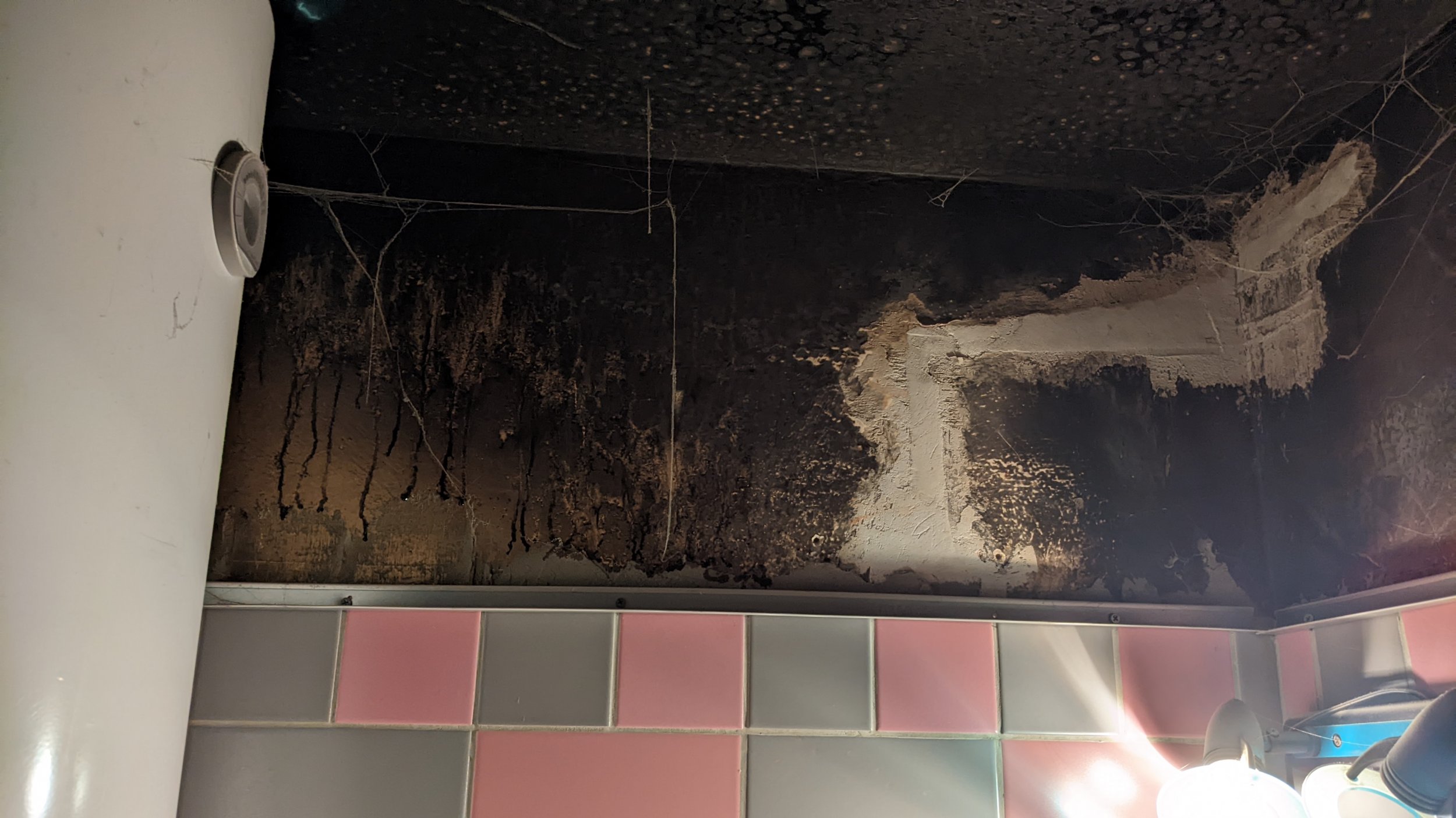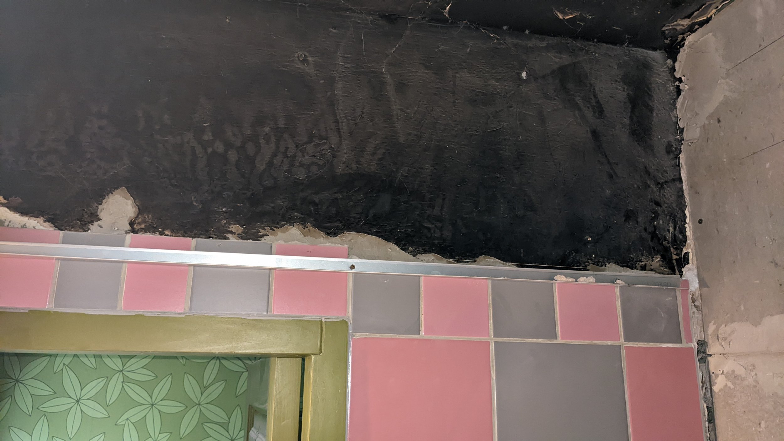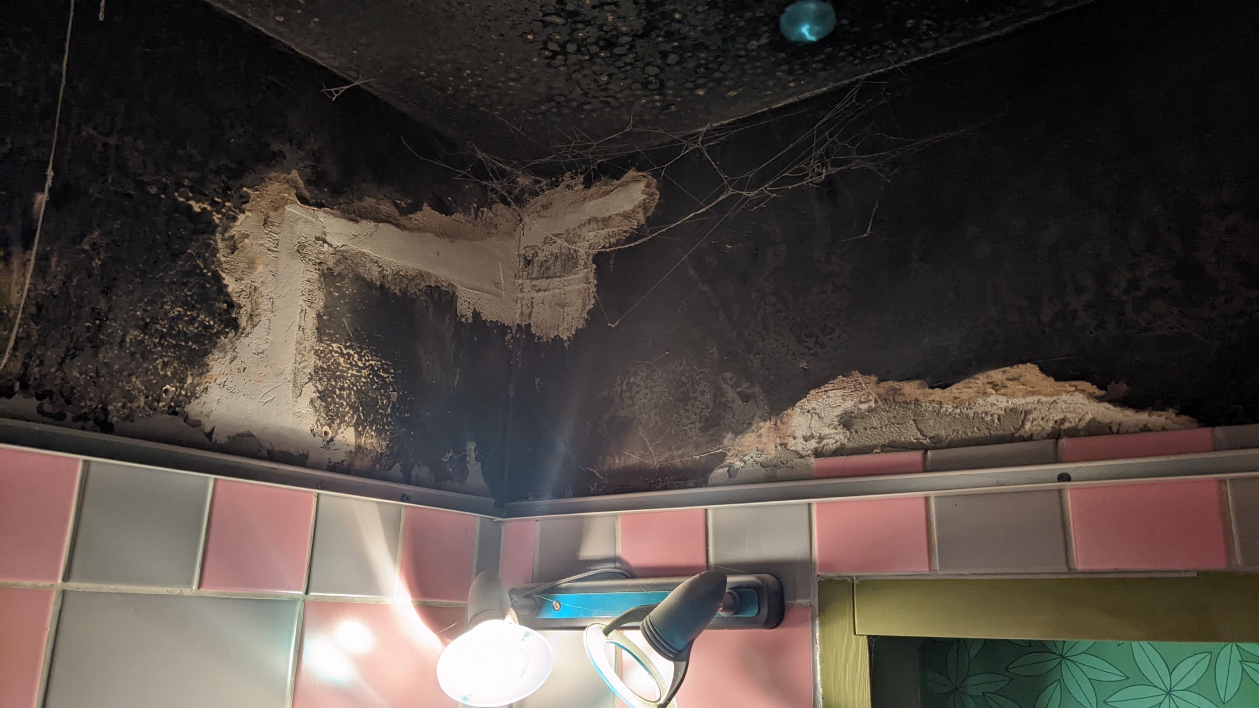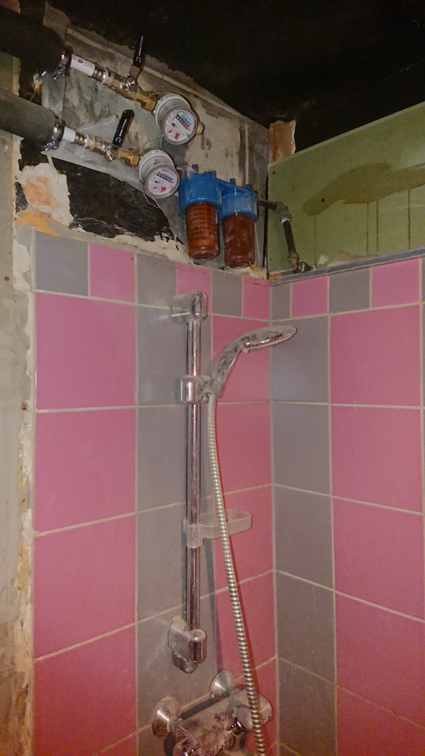 Vaja plaatida vannitoas 4m2 seinapinda, veešahti tagune ja kunagise ripplae peidetud osa. Aluspind vajab tasandamist. Osaliselt torud ees, pildil näha. Ühel seinal kips ei ulatu laeni, vajadusel ka seal pikendada.