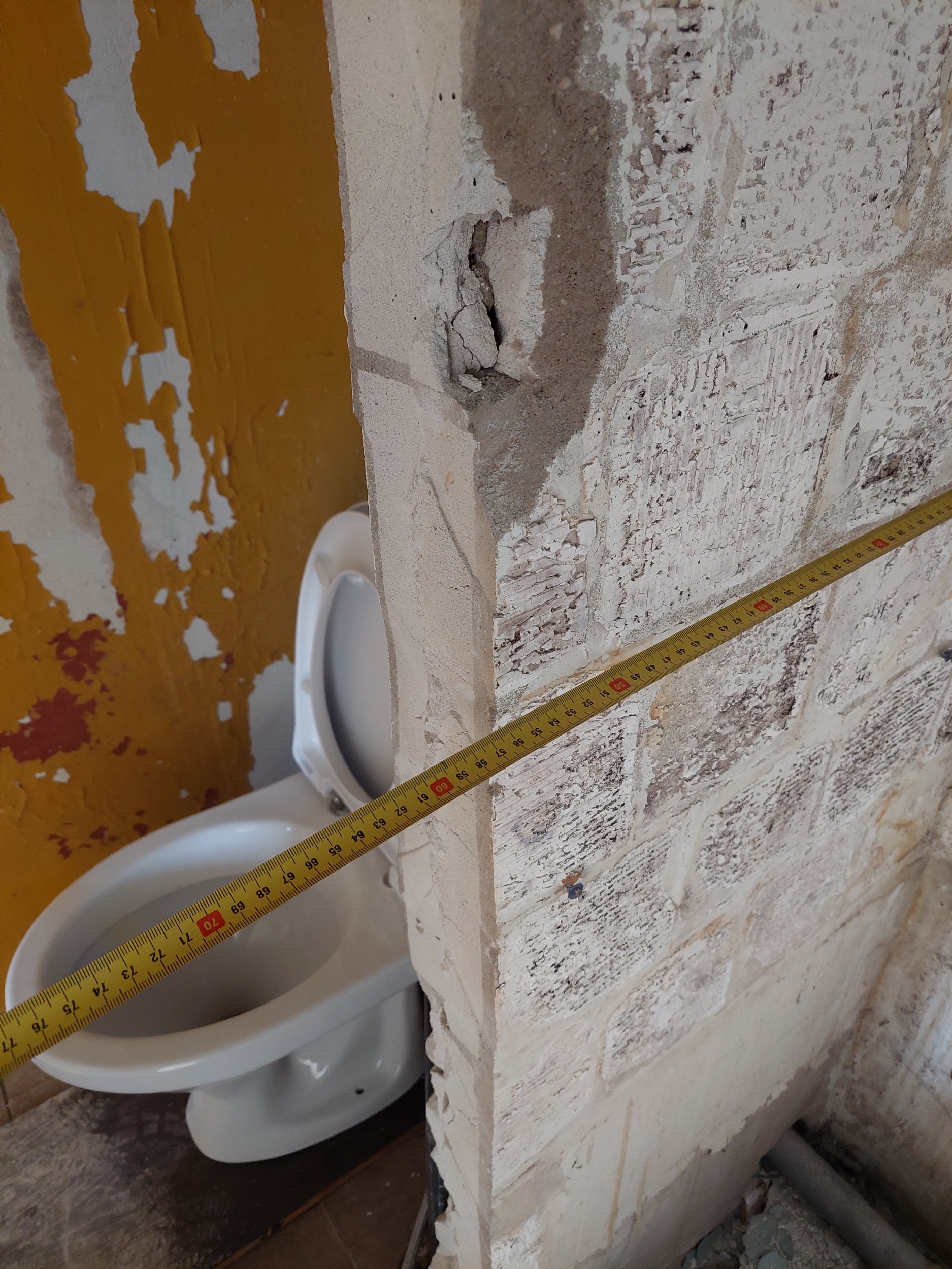 5) Hetkel WC pott ja veemõõtja paigas, kuid piltidel paistev toru ja veemõõtja on soov paigaldada pisikese vaheseina sisse - vaja tekitada WC ja vannitoa vahele poole seina ulatuses.