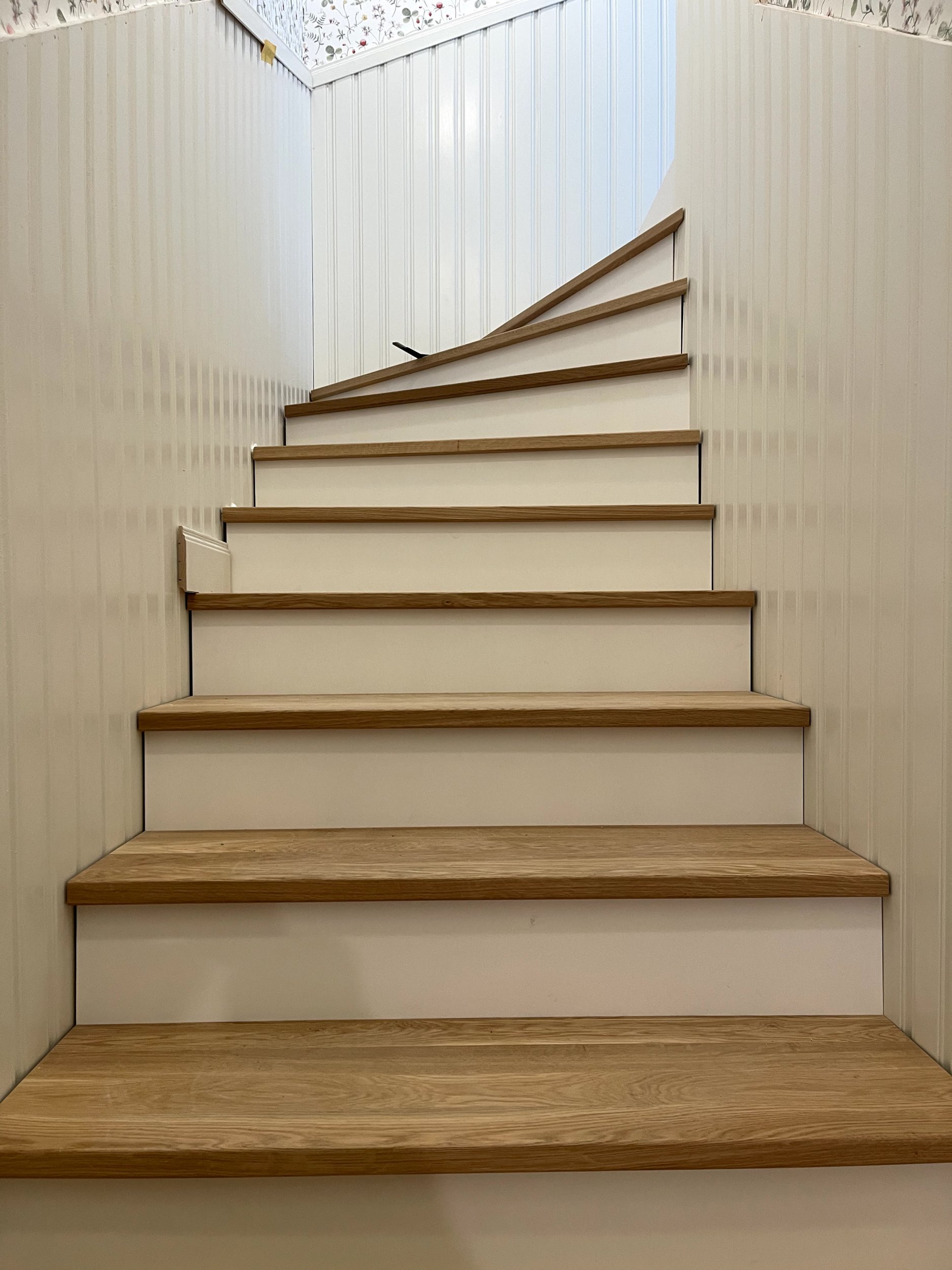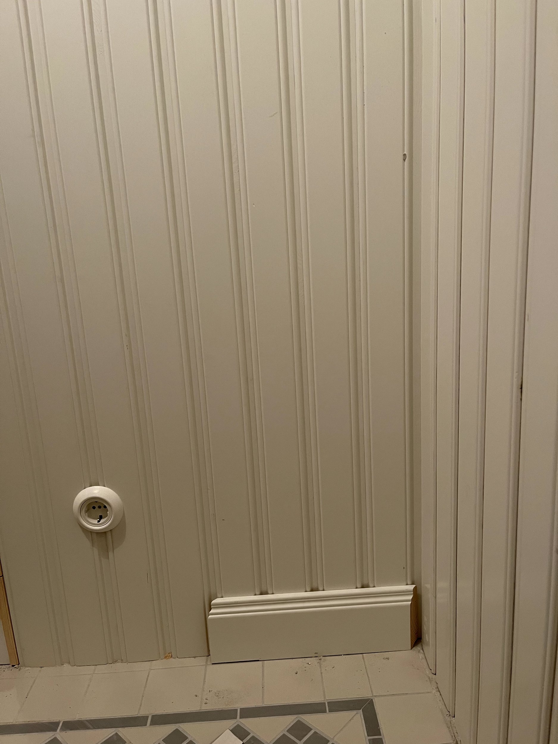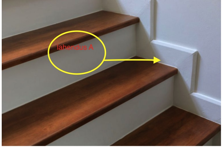 Trepiastmete ja seinalaudise vahelise prao viimistluslahendus - + umbes 6 m põrandaliistu paigaldus.