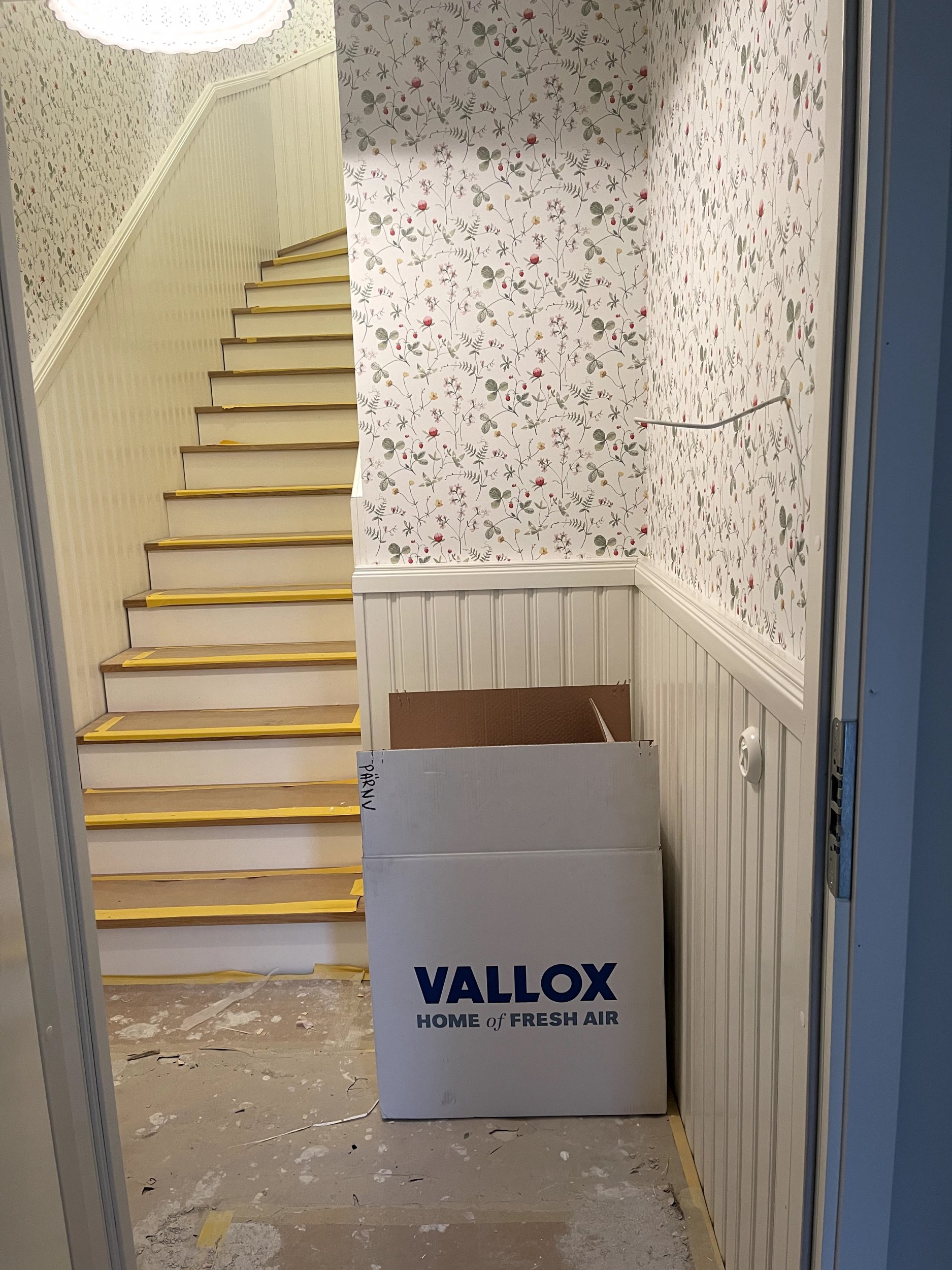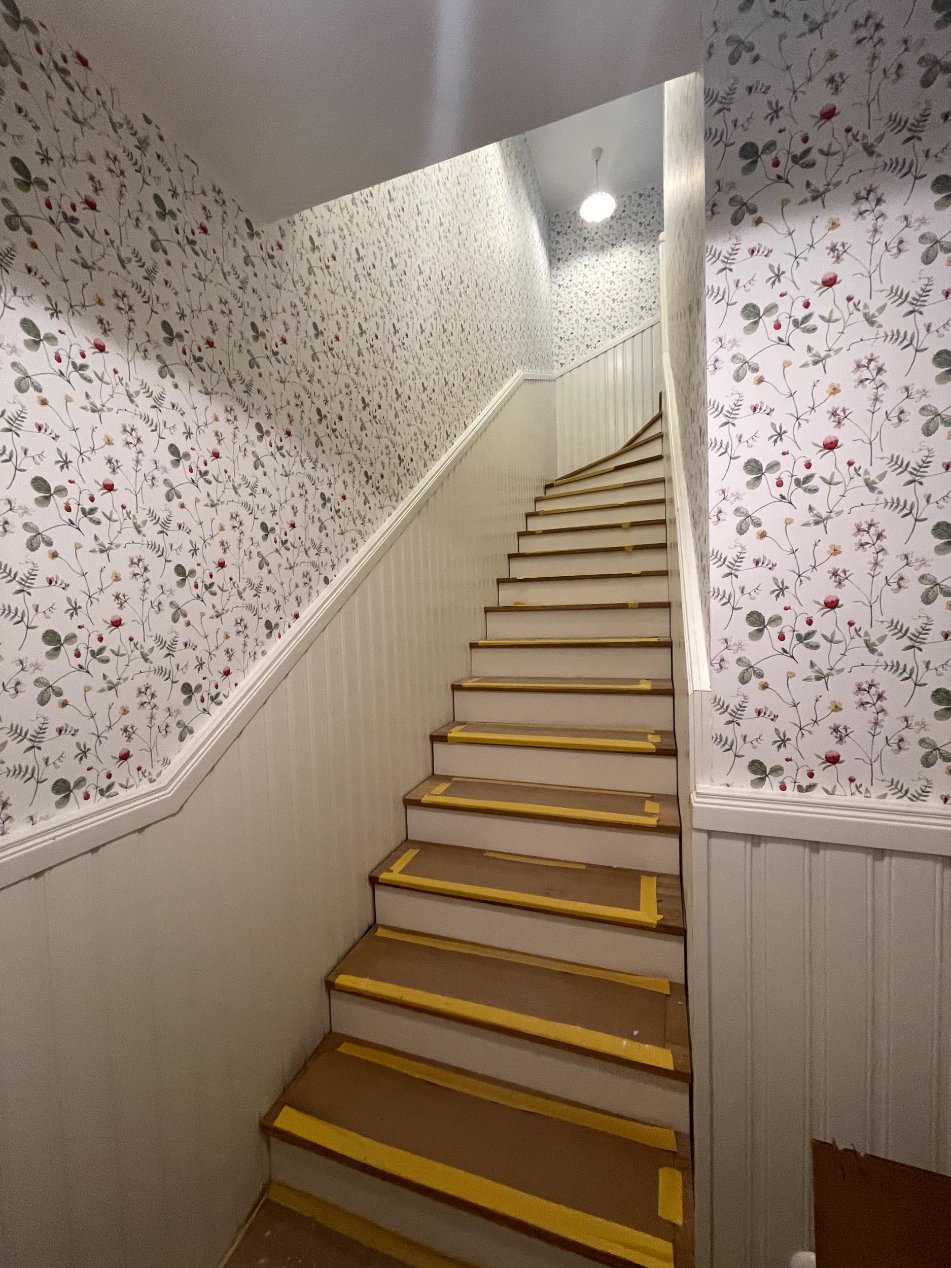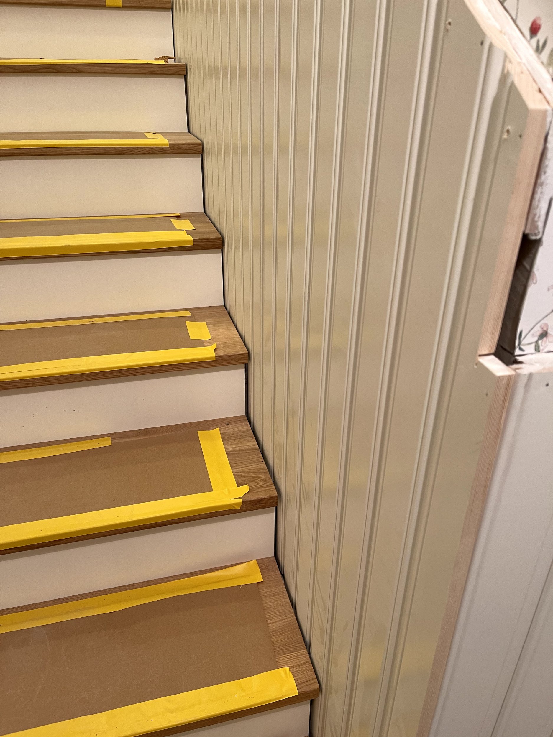 Trepiastmete ja seinalaudise vahelise prao viimistluslahendus - + umbes 6 m põrandaliistu paigaldus.