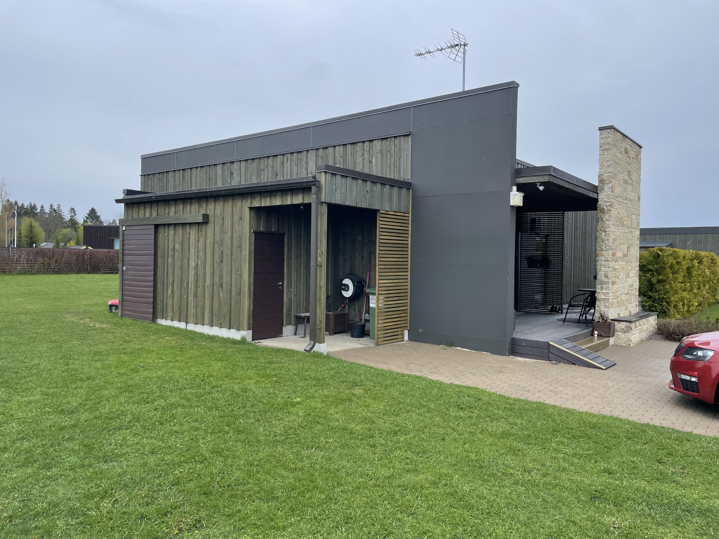 Maja puit ja tempsiplaatidest fassaadi värvimine. Mahud järgmised:
