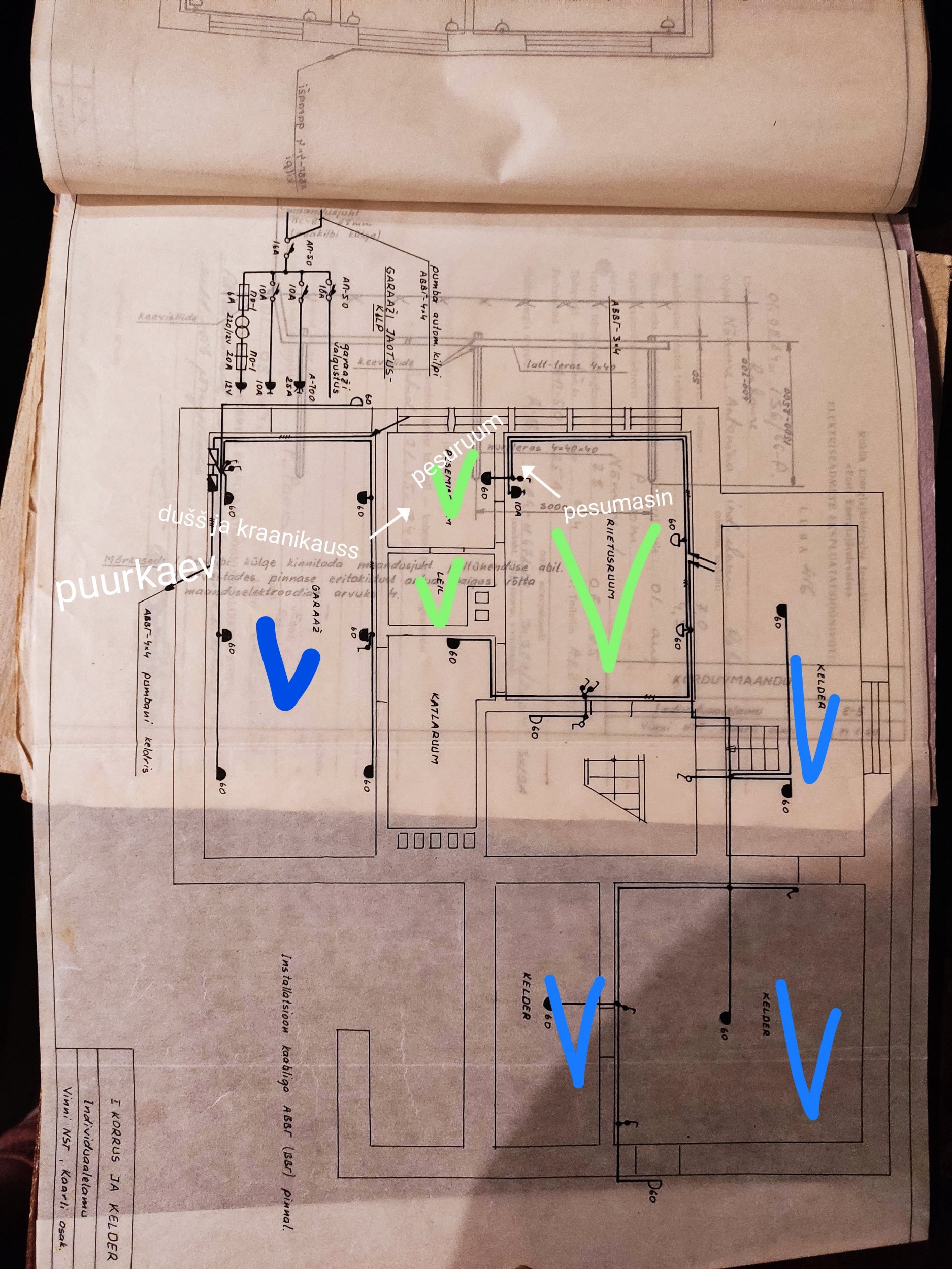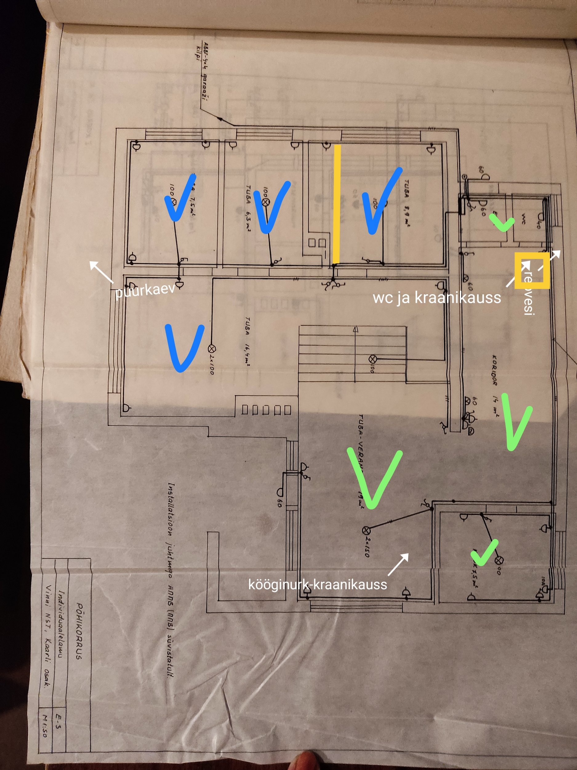 Sinisega märgitud tubadesse tulevad radiaatorid. Lisaks garaaži üks ja keldrisse igasse ossa (kokku 3tk) radiaatorid.
