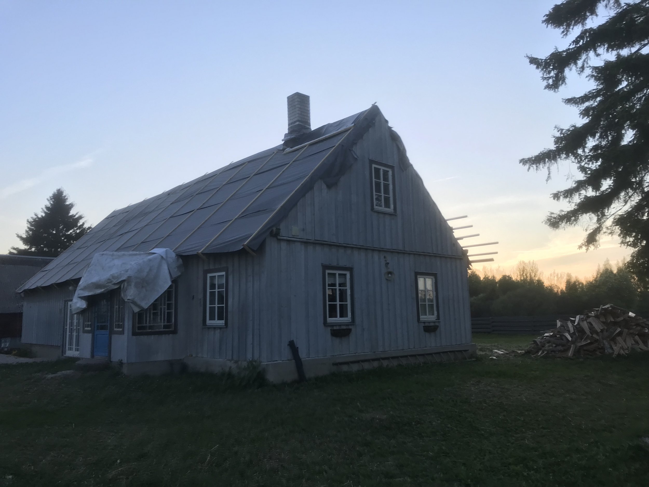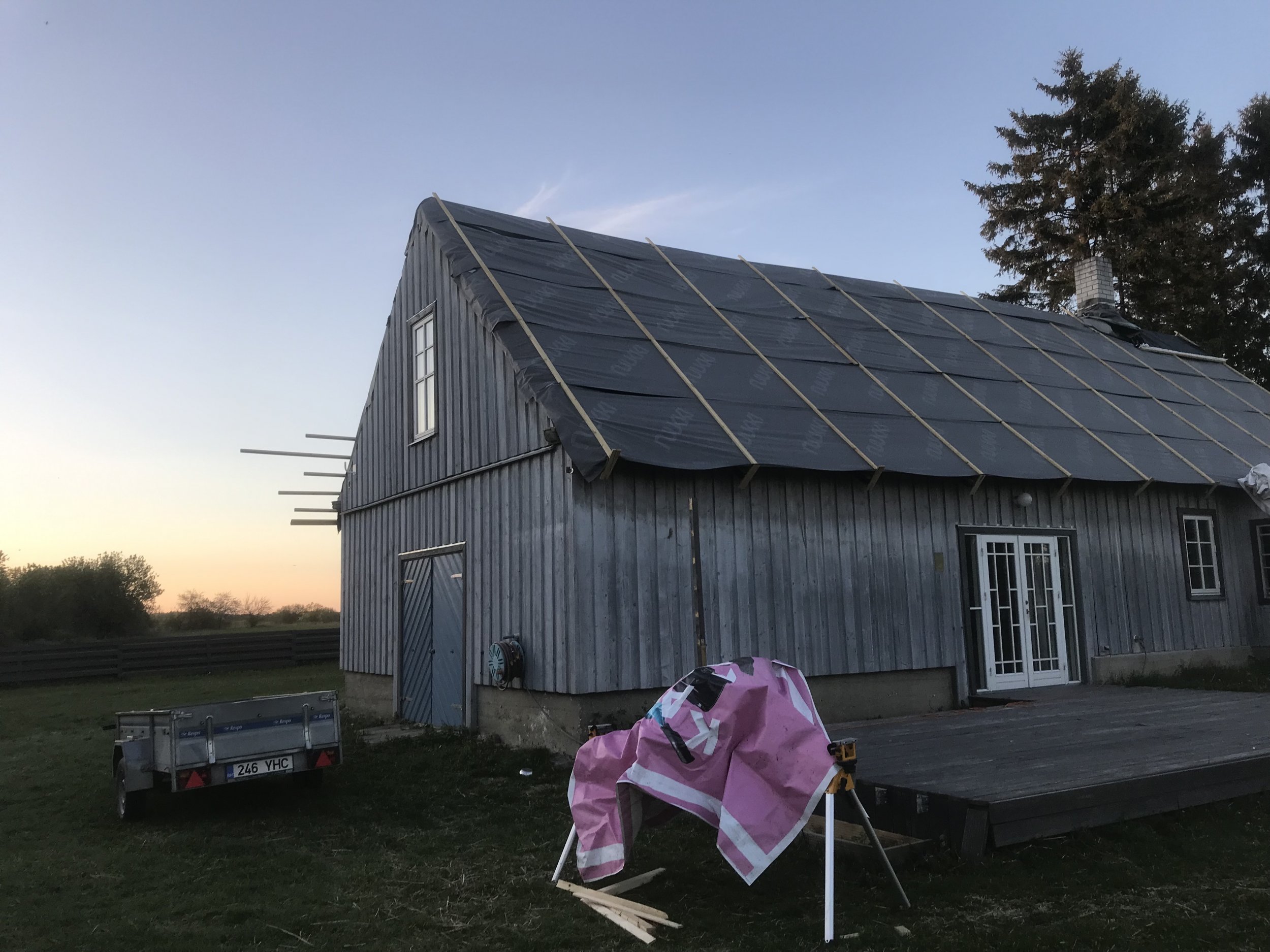 Olemasolevale roovitusele (hetkel pannakse) katusekivide paigaldus. Kiviks on Benders Palema koos äärte ja harjakiviga. Katuse pinda ca 240m2. Tegemist tüüplilse katusega, koos kahe etteulatuva osaga - sahver ja esik (näha ka skeemil). Kivid tõstetakse katusele laiali.