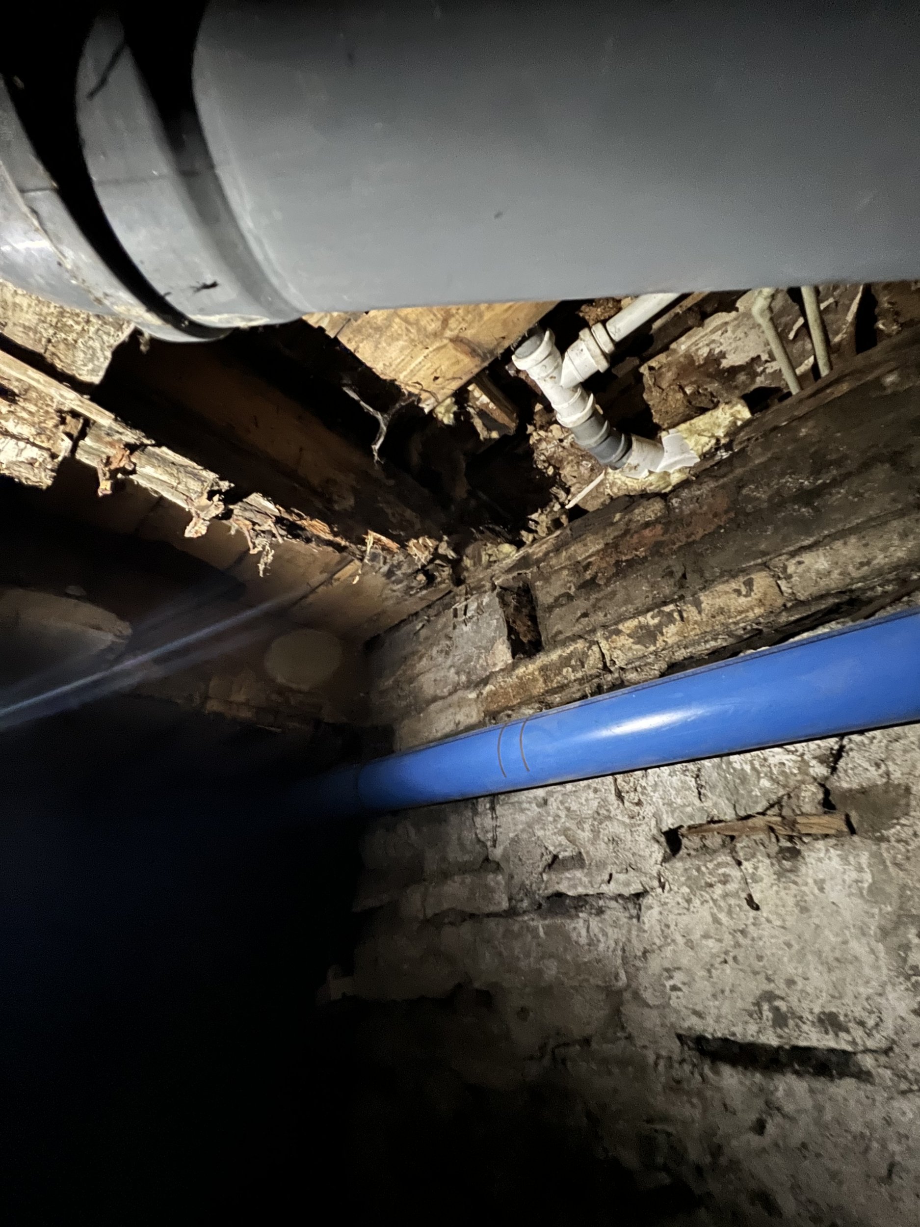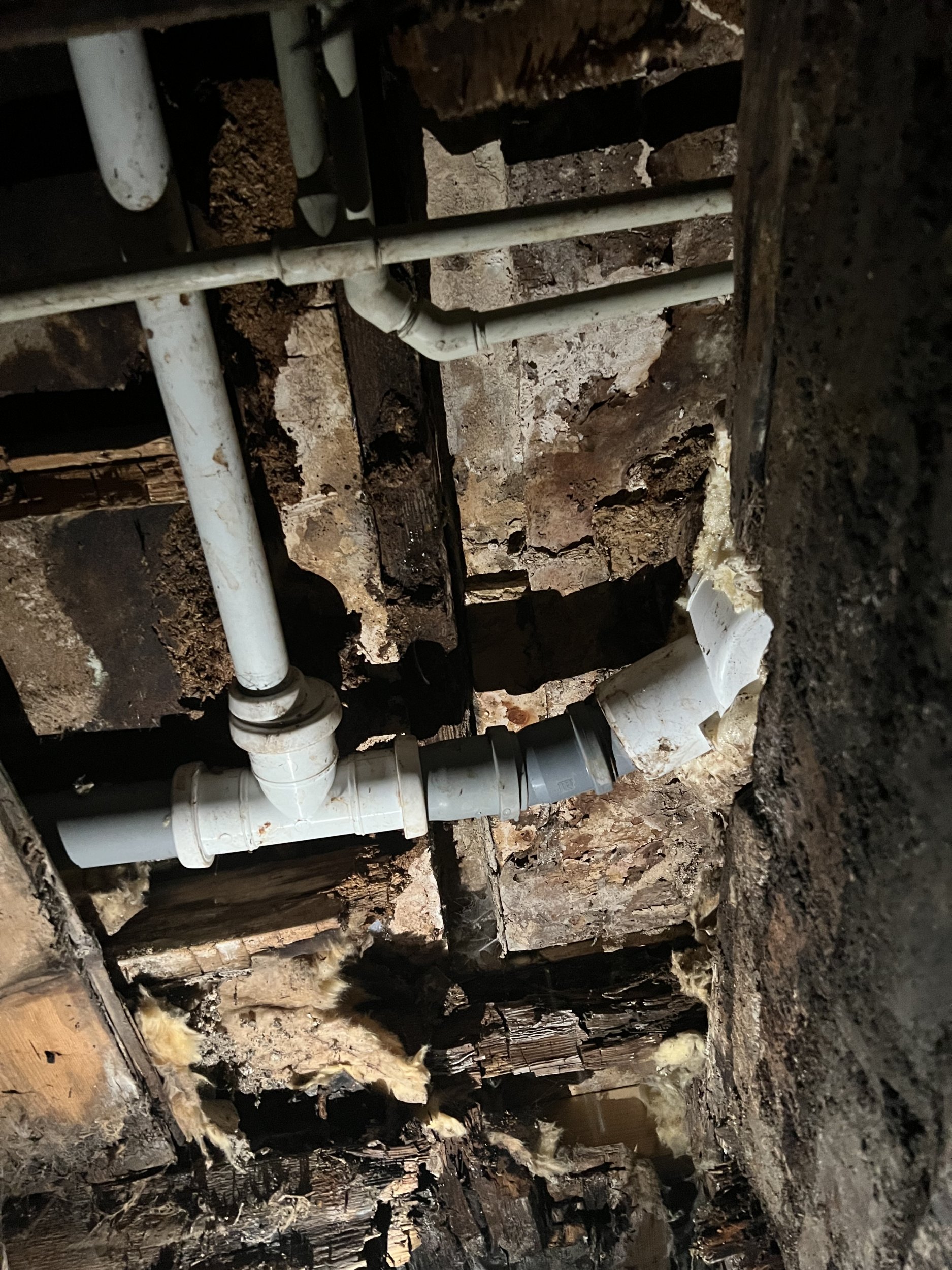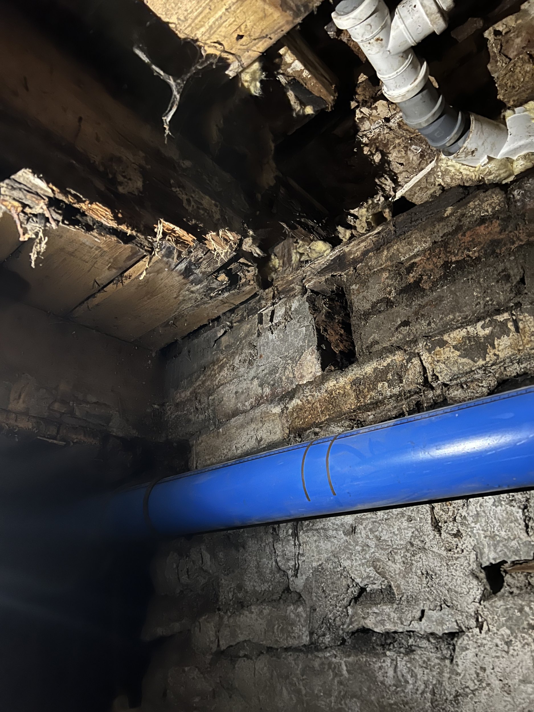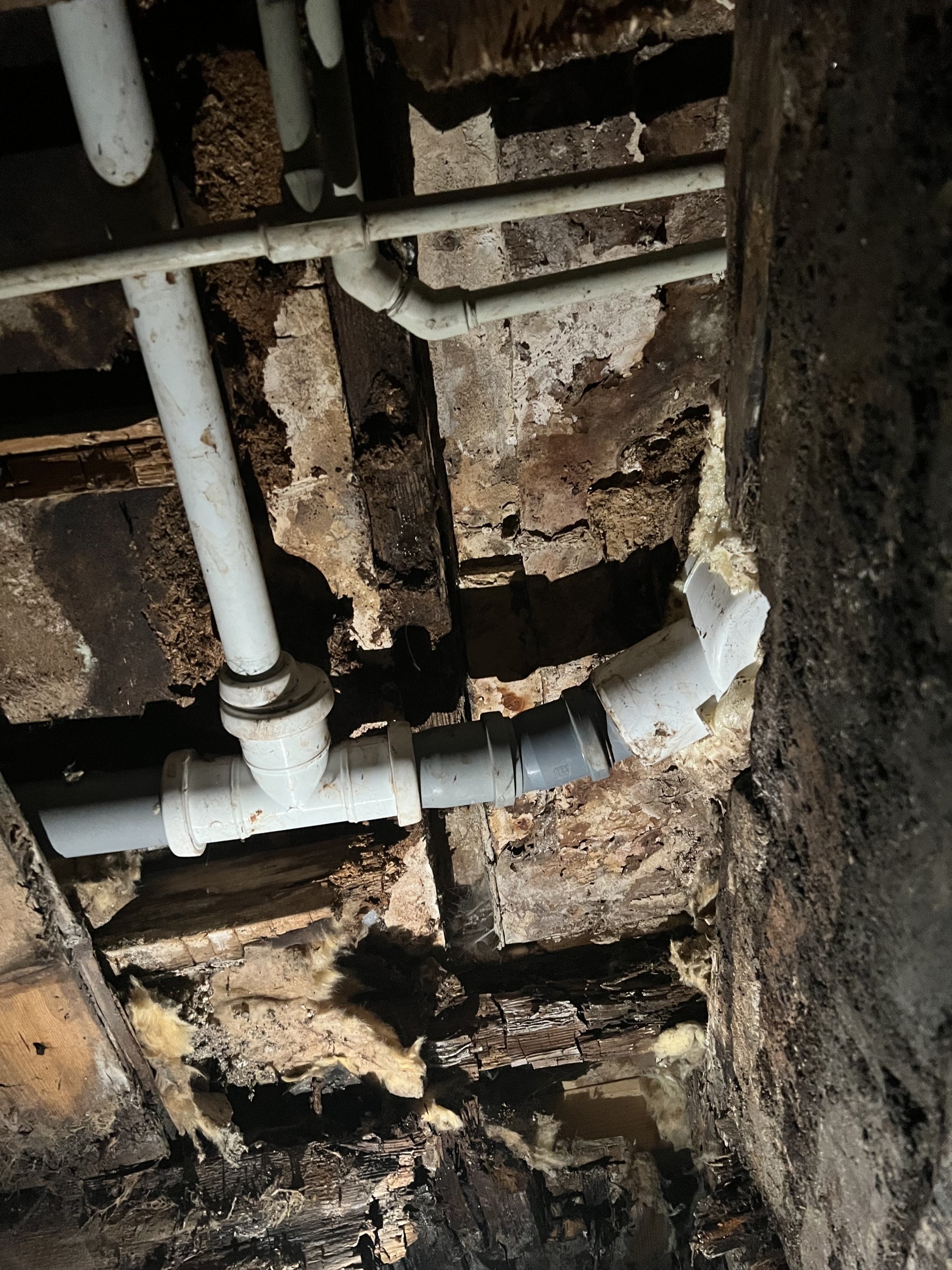 Veekahjustuse tõttu on kannatada saanud vannitoa all olev keldrilagi.