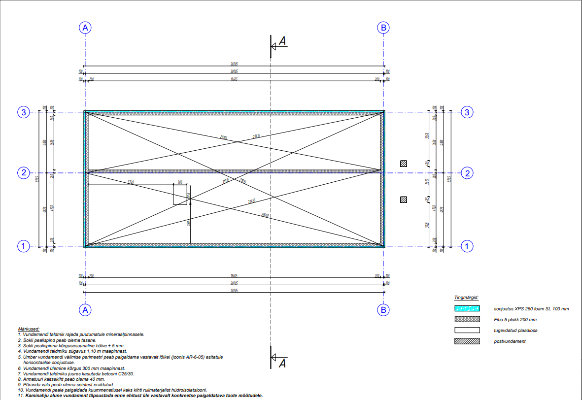 Panen kaasa vundamendiplaani. Töödega alustatud ei ole, st pinnas vaja ka peal ära võtta, kuid seda ei ole vaja utiliseerida, jääb kinnistule.