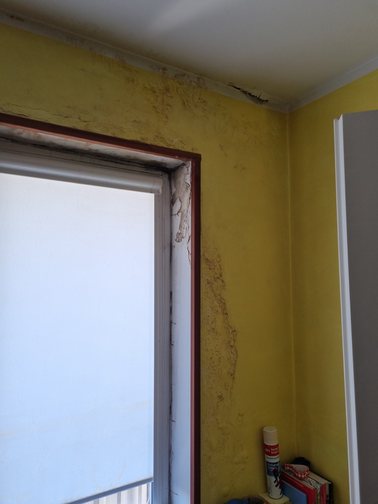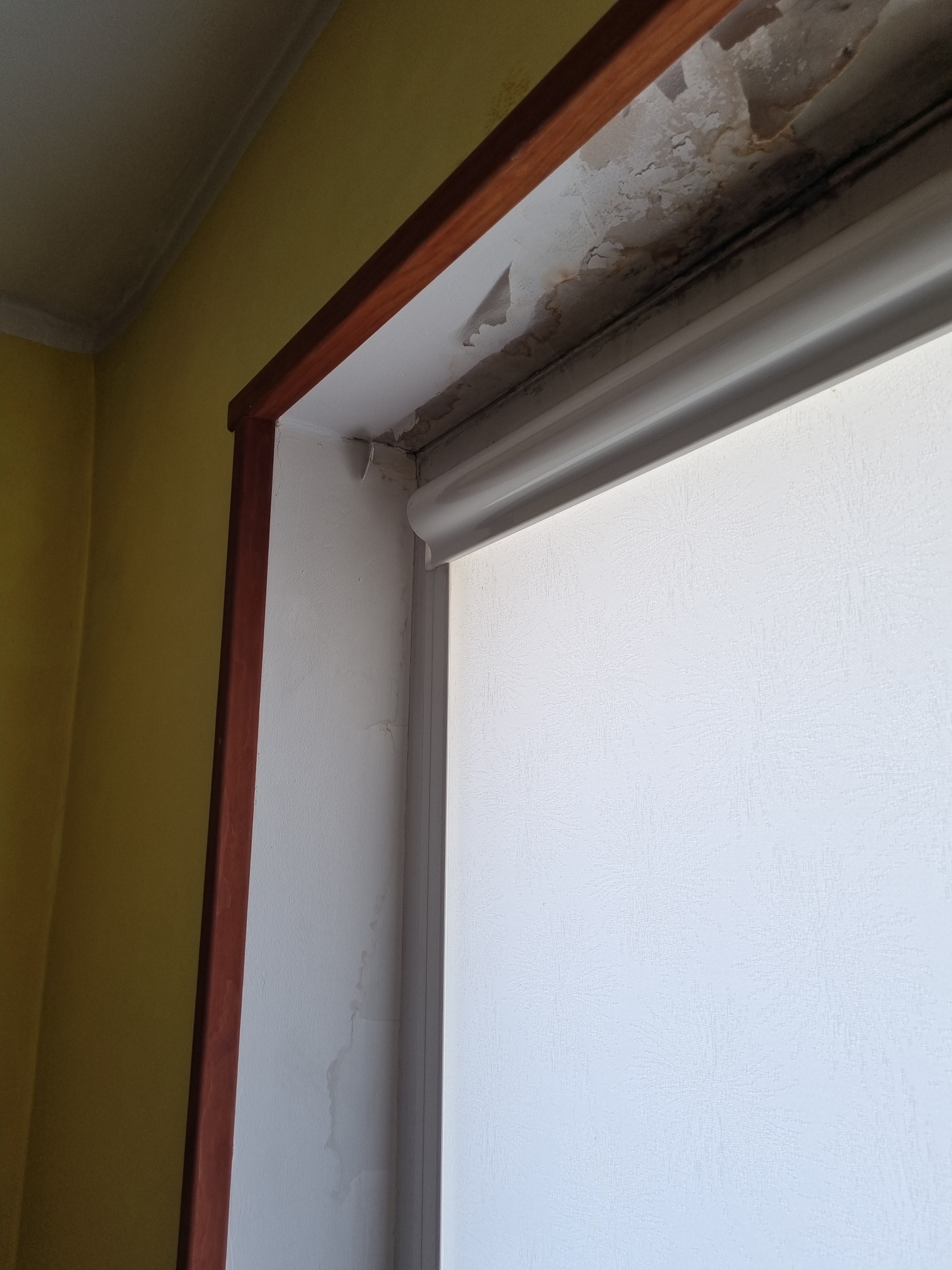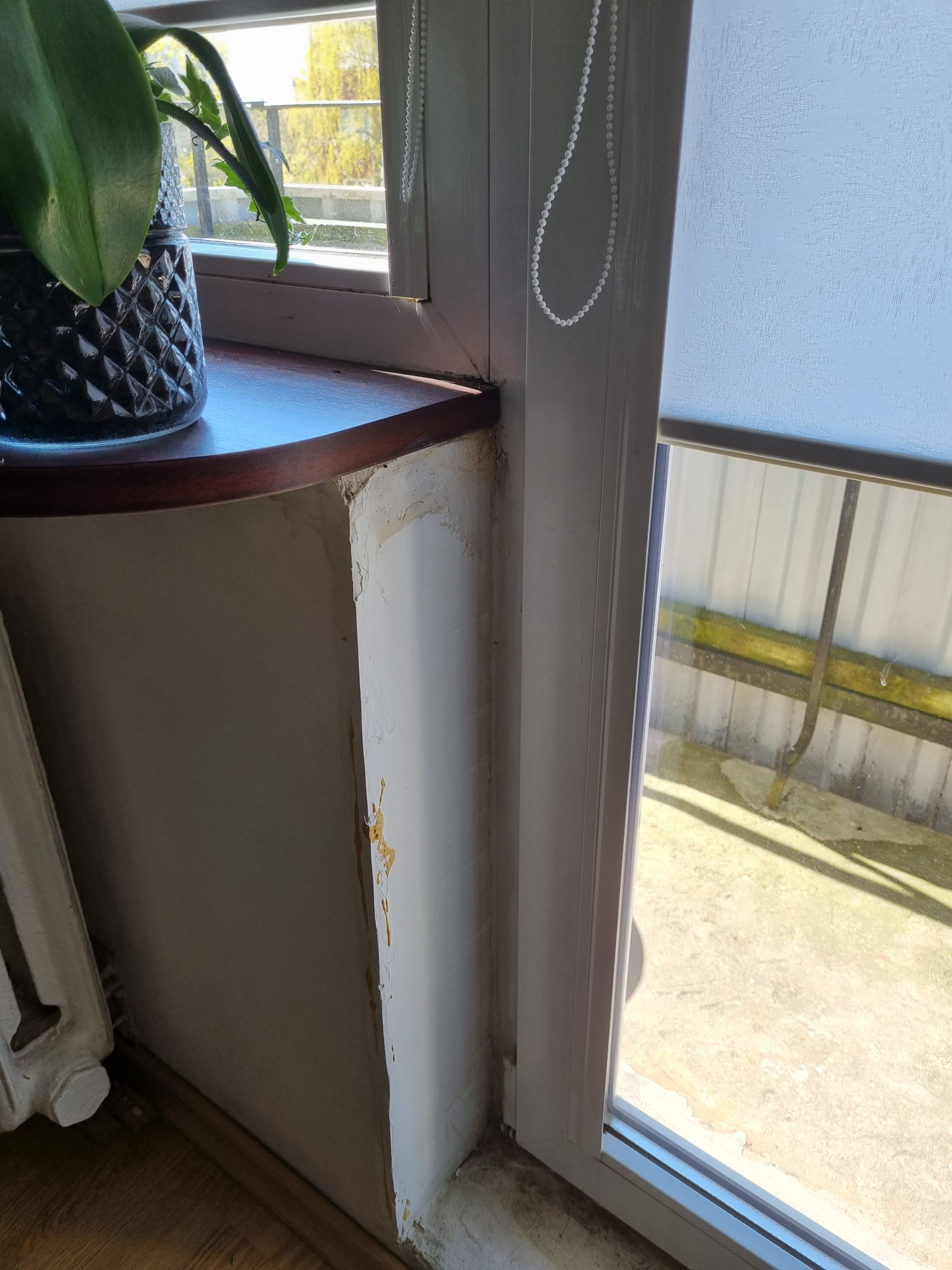 Ülemise korruse rõdupaneeli ja seina vahelt tungis vesi korterisse. Tulemuseks on rikutud sein, aknapõsede, lagi.