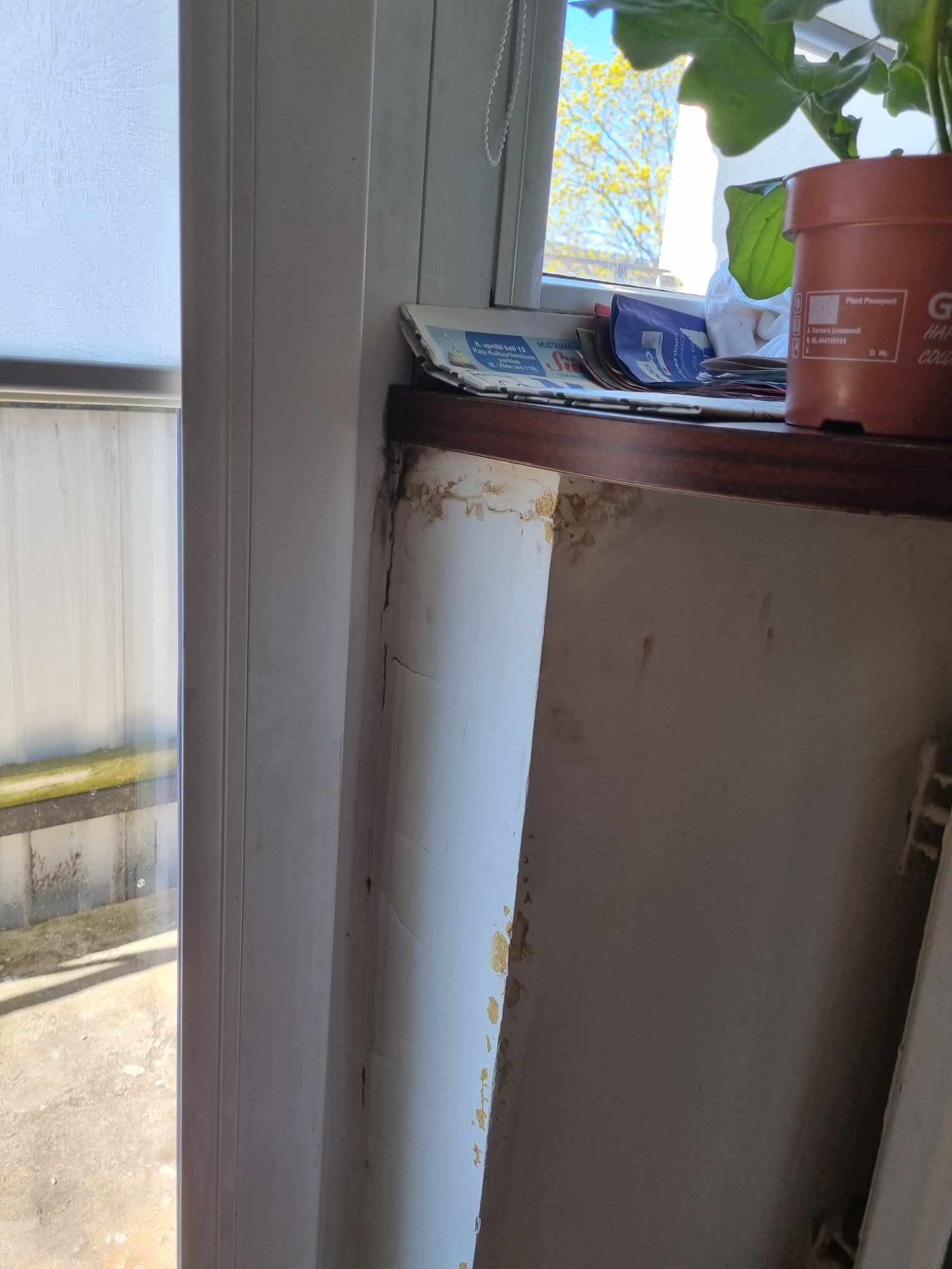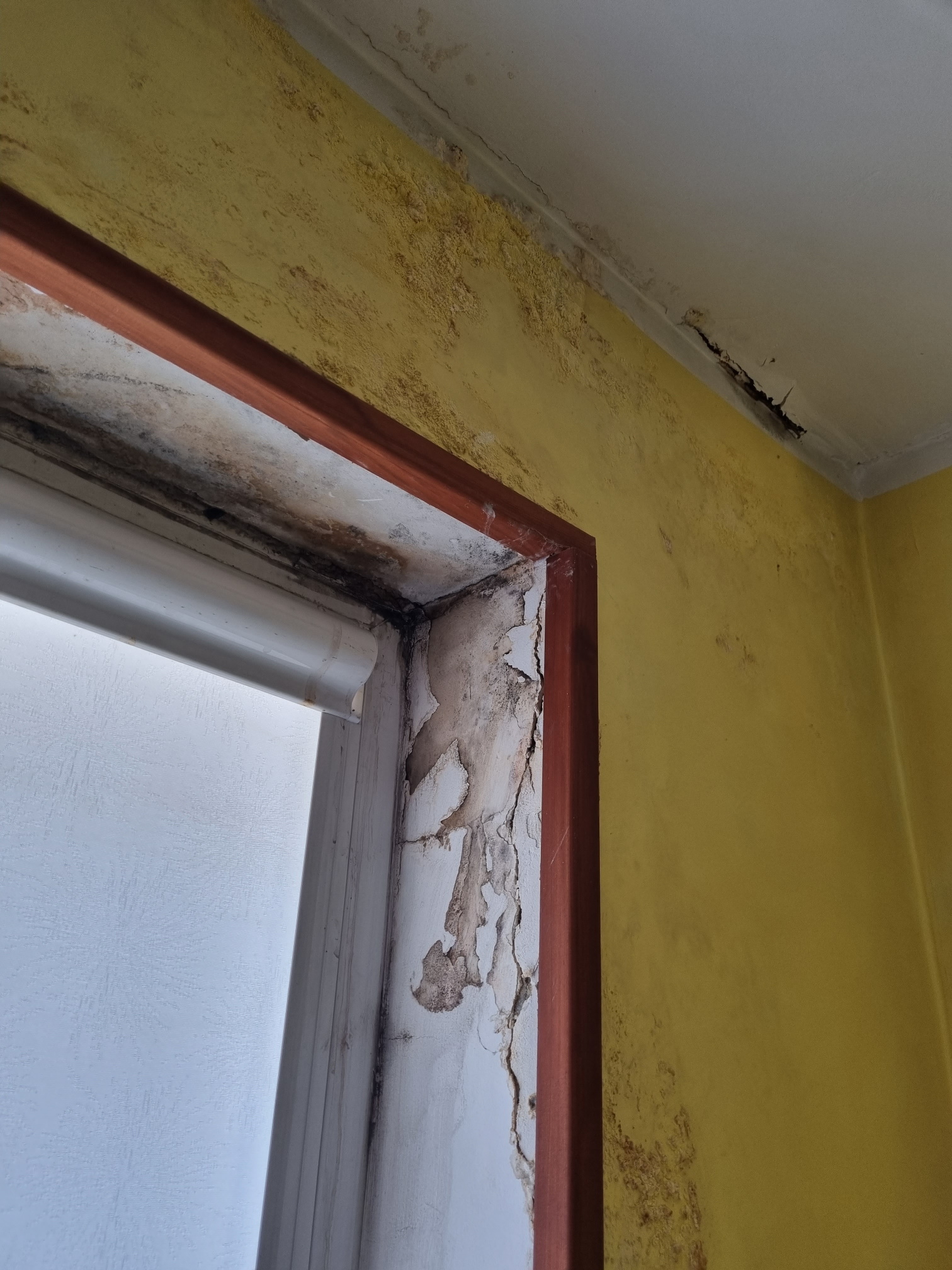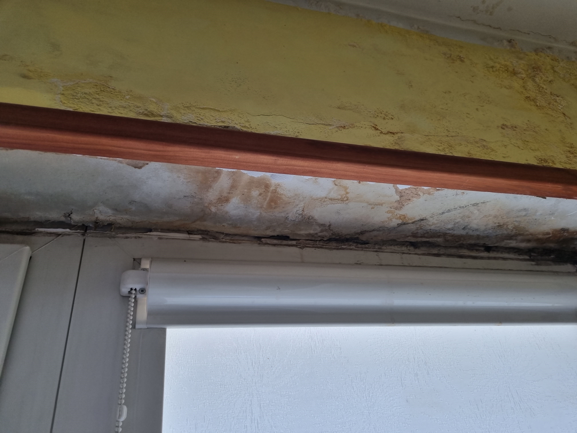 Ülemise korruse rõdupaneeli ja seina vahelt tungis vesi korterisse. Tulemuseks on rikutud sein, aknapõsede, lagi.