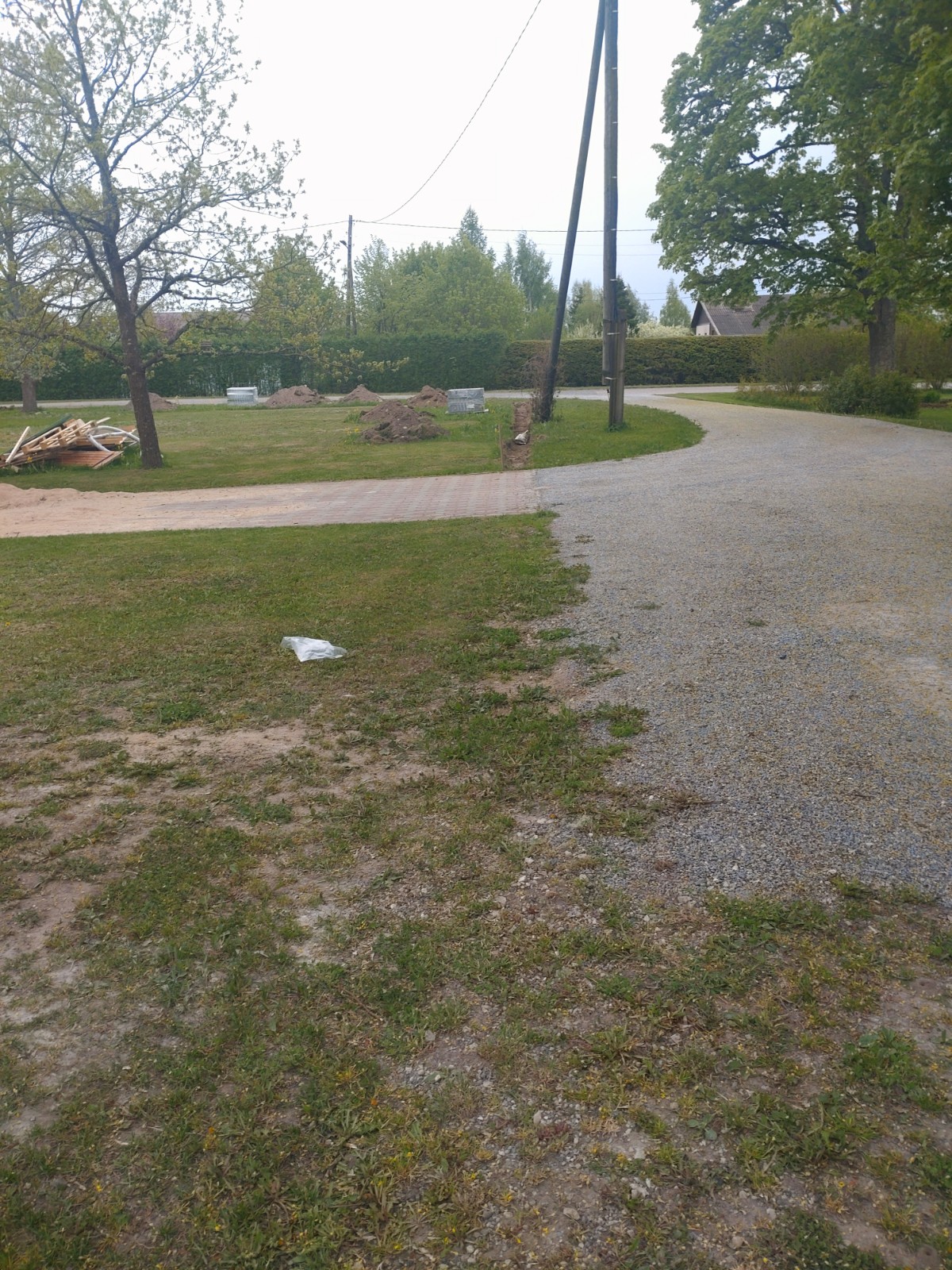 Aiapostide ette/vahele kõnnitee äärekivi paigaldamine.