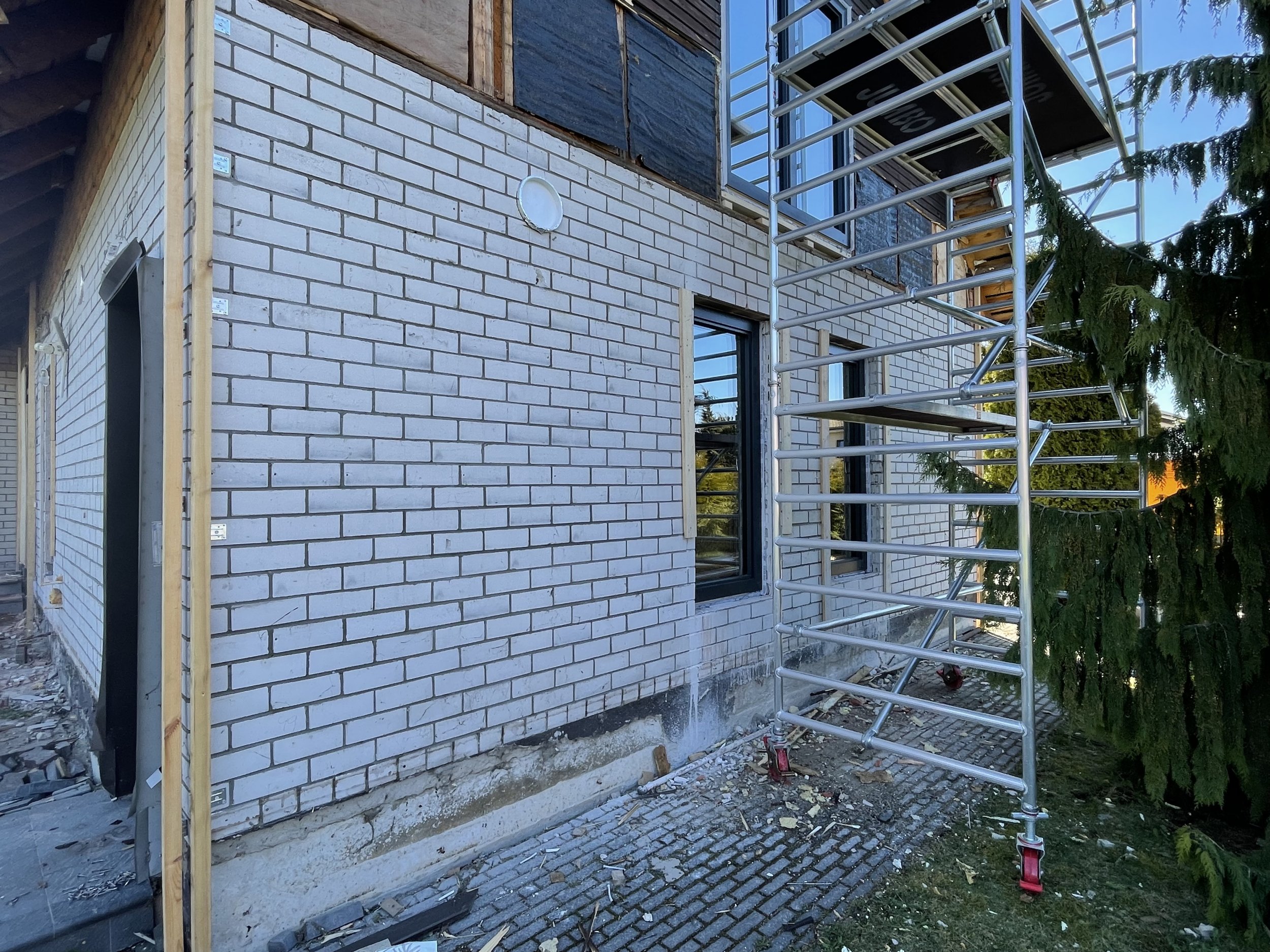 Karkass 50x50 läheb õõnes silikaattellisele ( 1. korrus). Teise korruse otsaseinad on puidust.