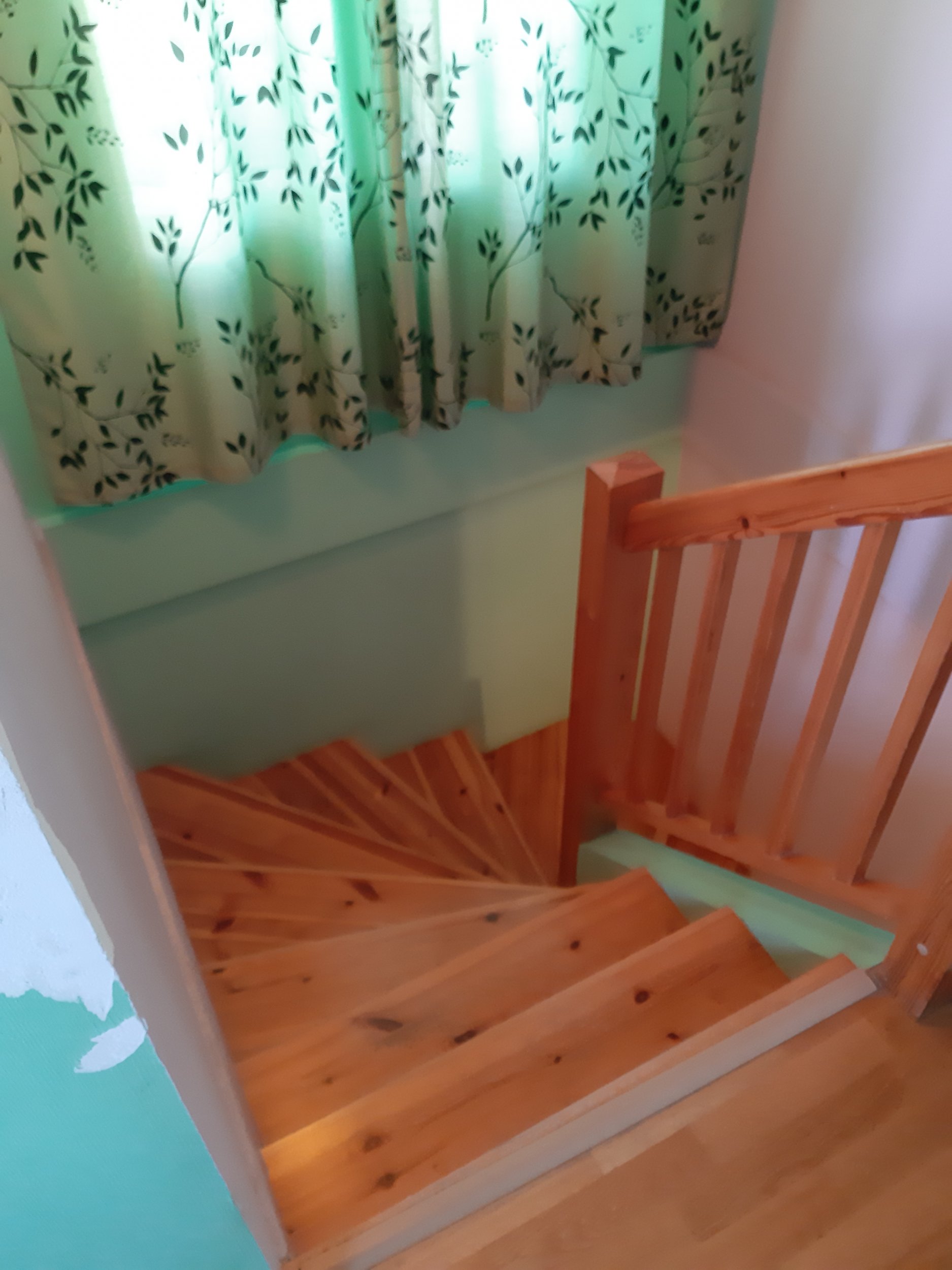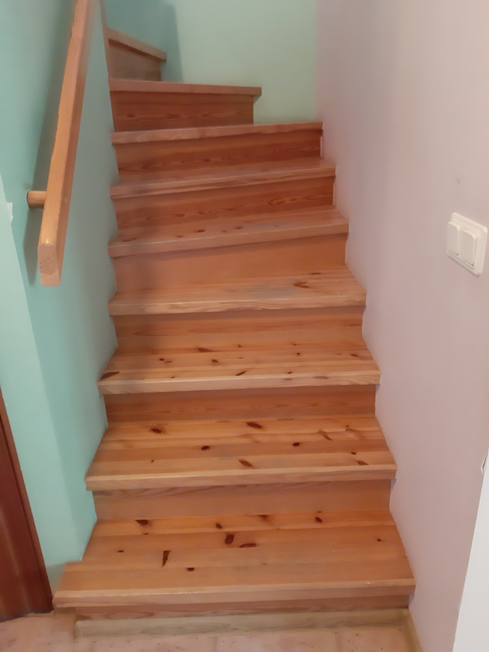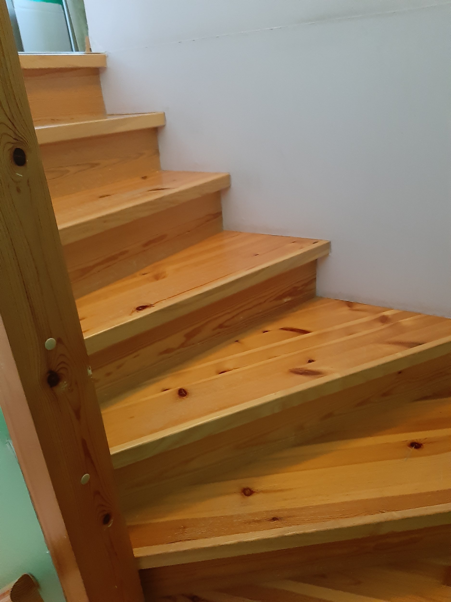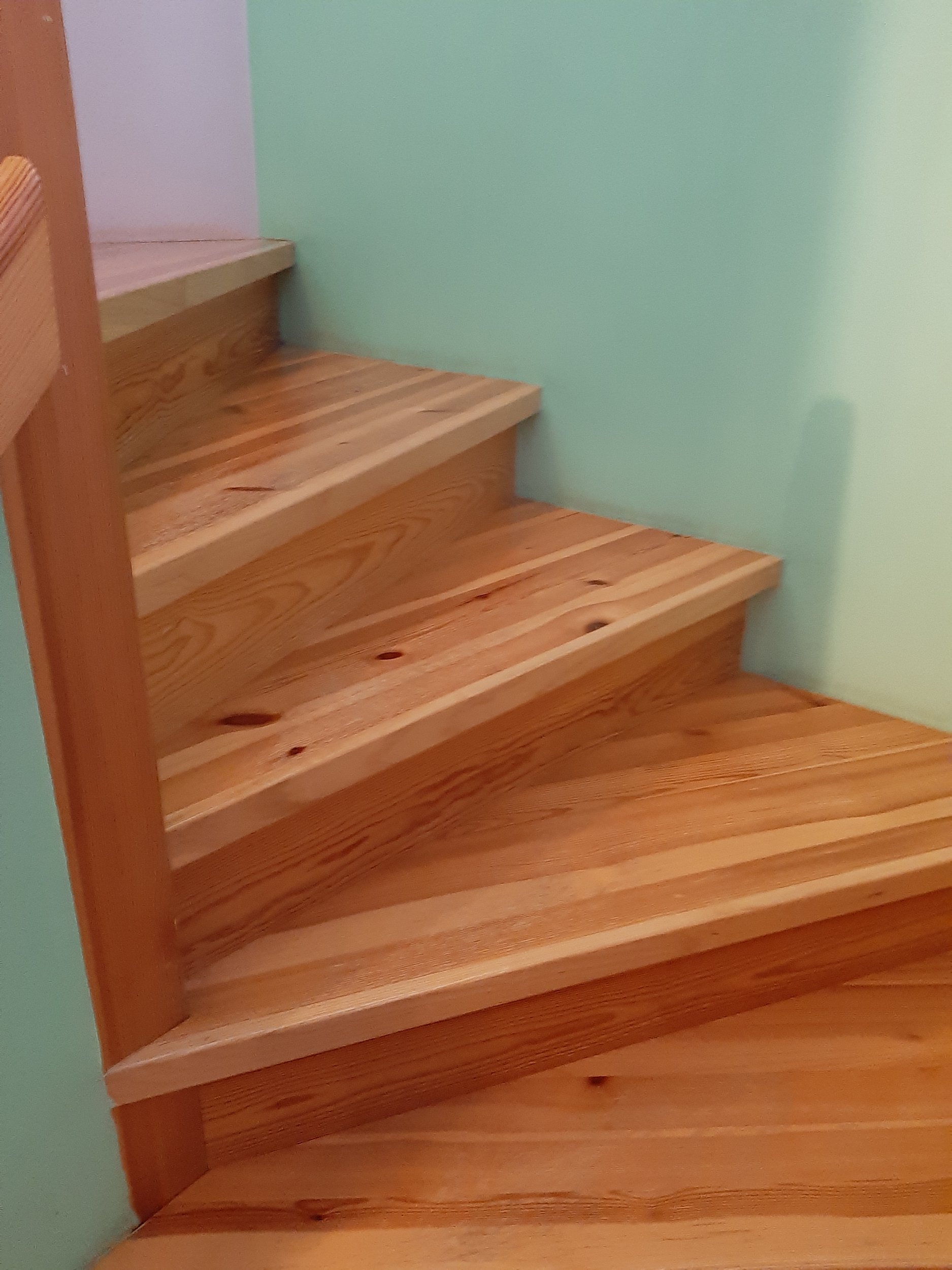 Ukujulise trepi ja piirete, käsipuu lihvimine vajadusel pahteldamine ja lakkimine, värvimine kahe erineva tooniga.