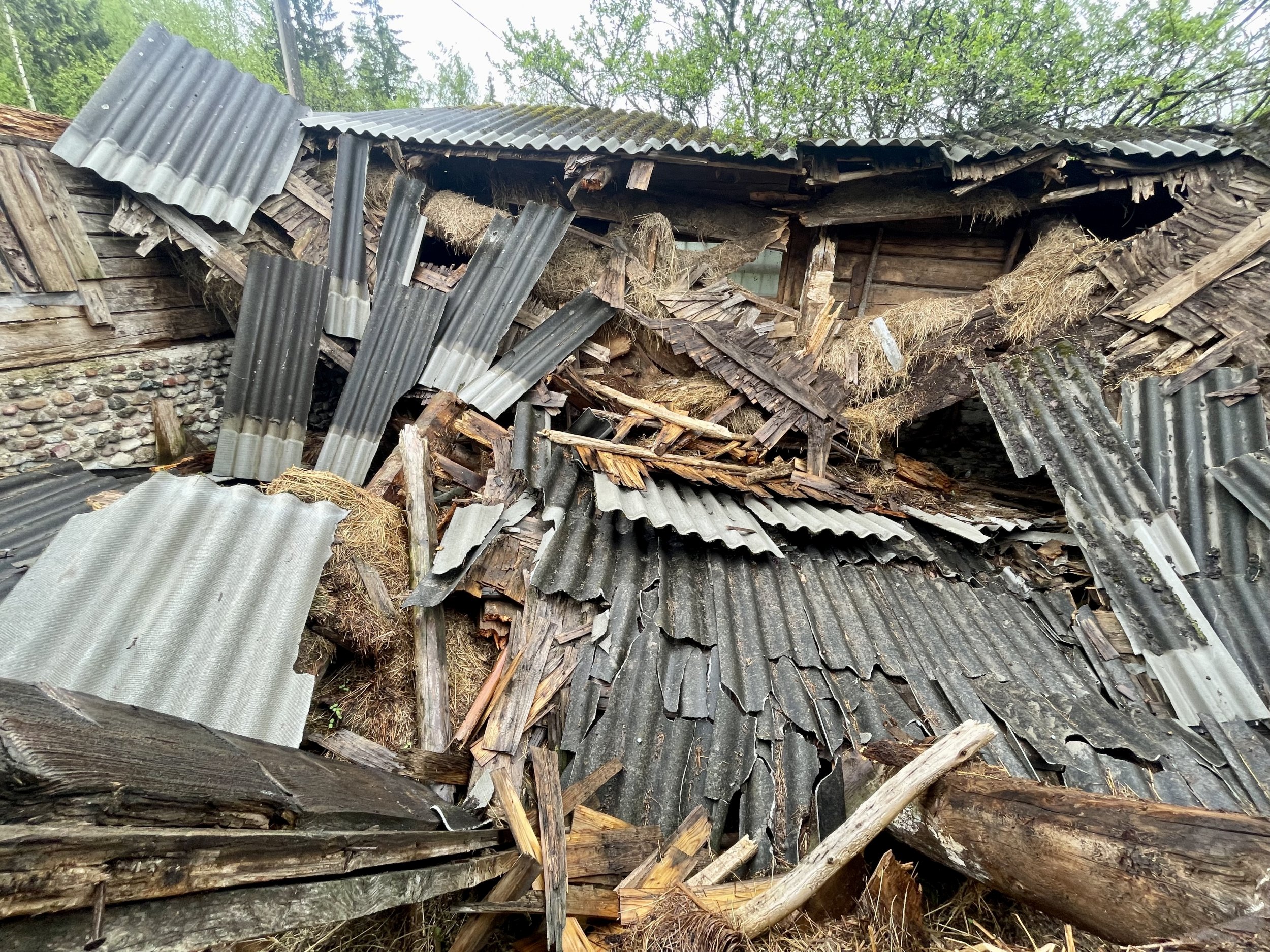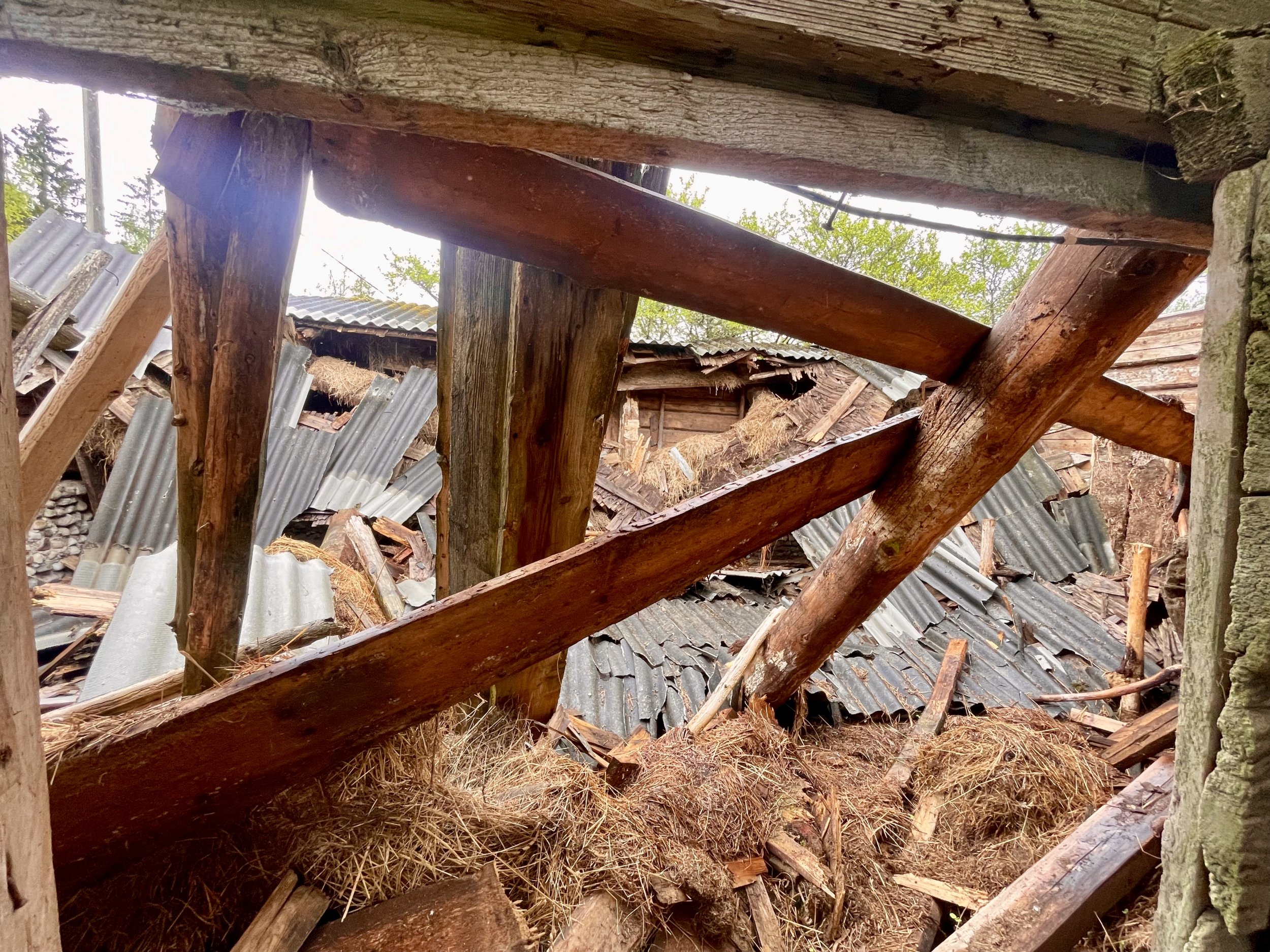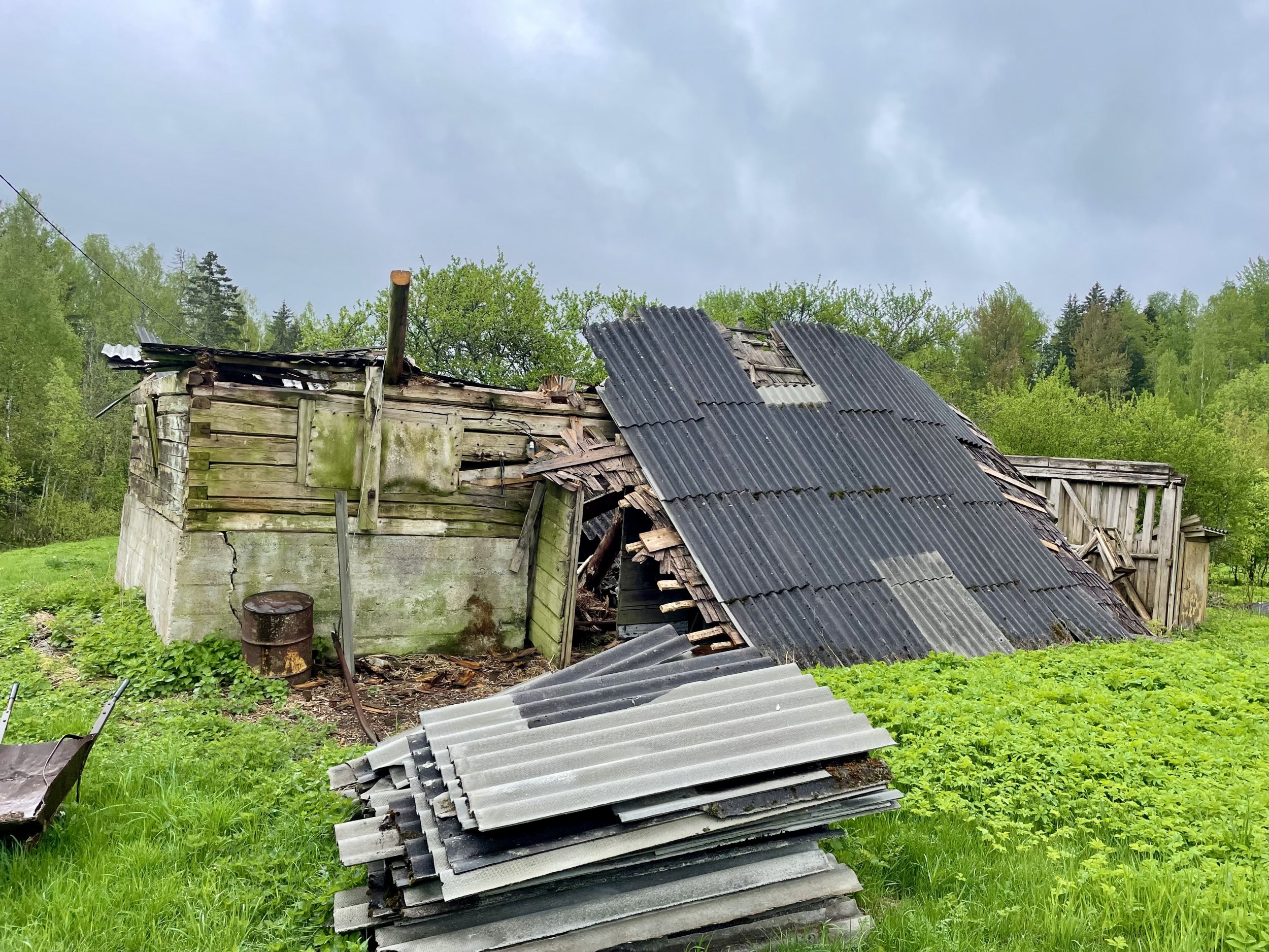 Sissekukkunud katusega vana laudahoone lammutus ja prahi koristus. Hoone mõõtmed on ca 6m x 13m.