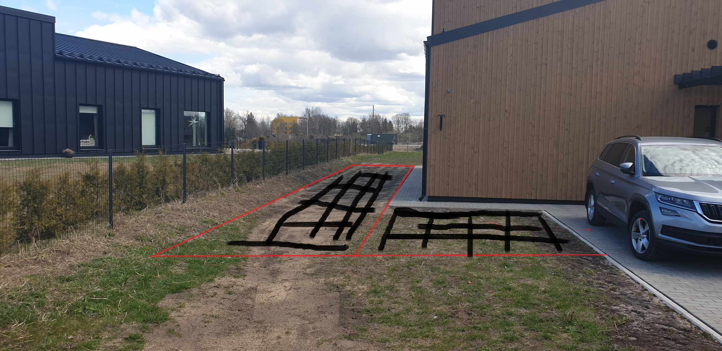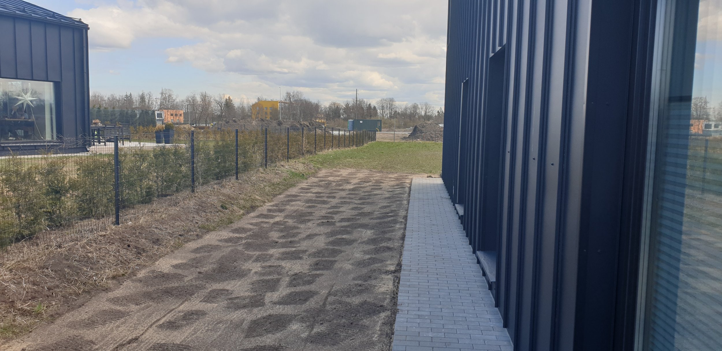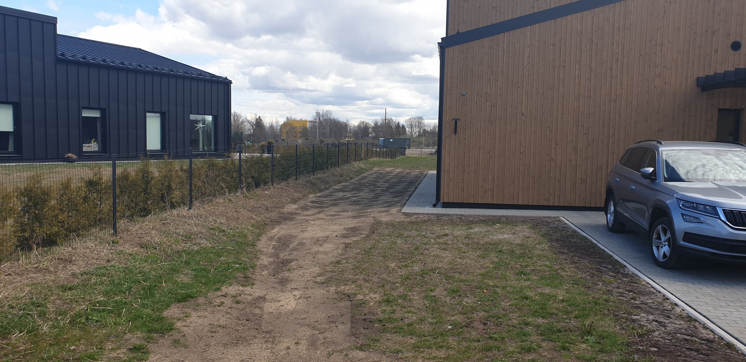 Kõnniteekivide paigadamine maja küljepeale ja ette. Eesmärgiks laiendada autode parkimisala. Ligikaudu 90m2 kivide paigaldust.