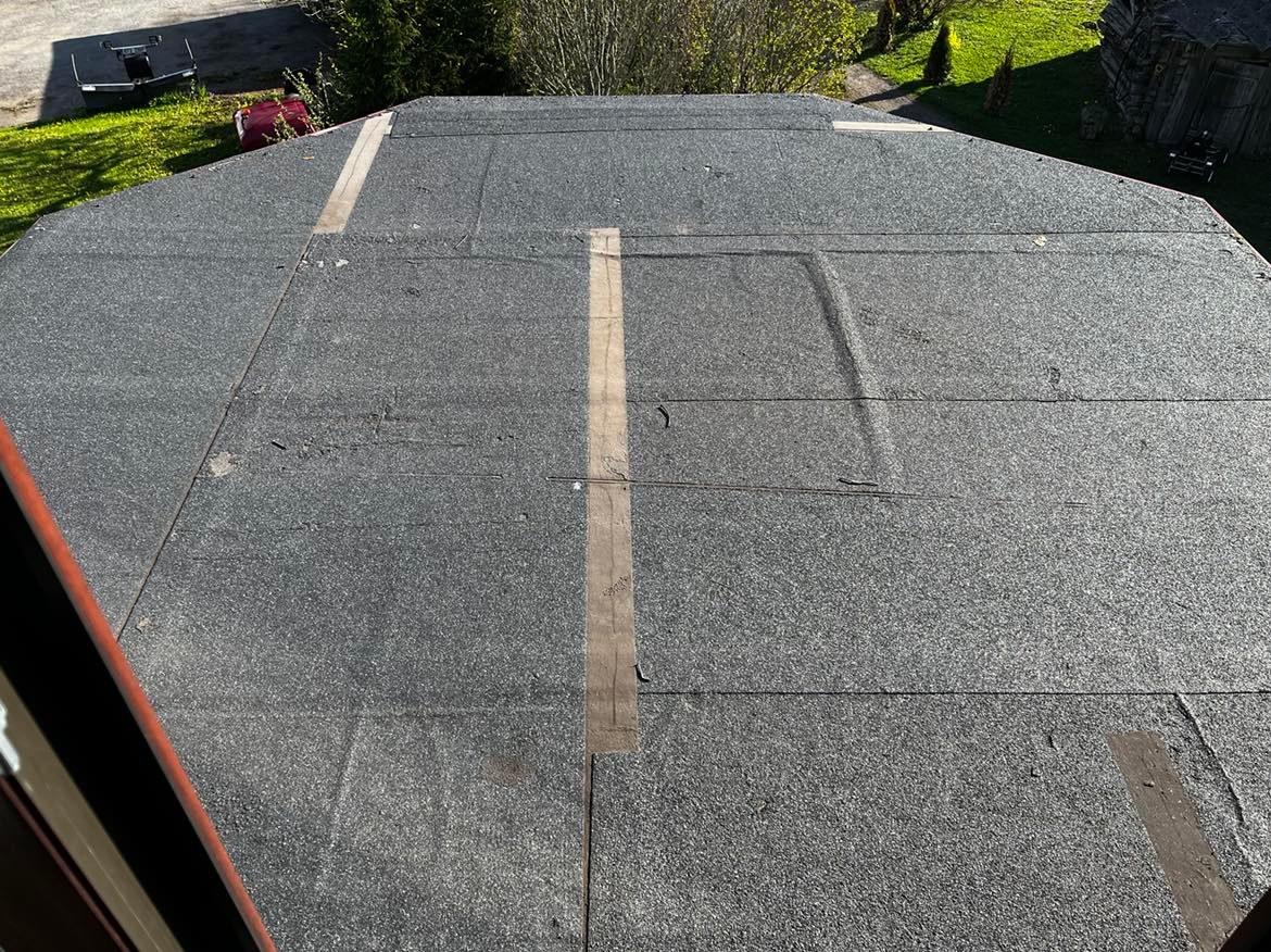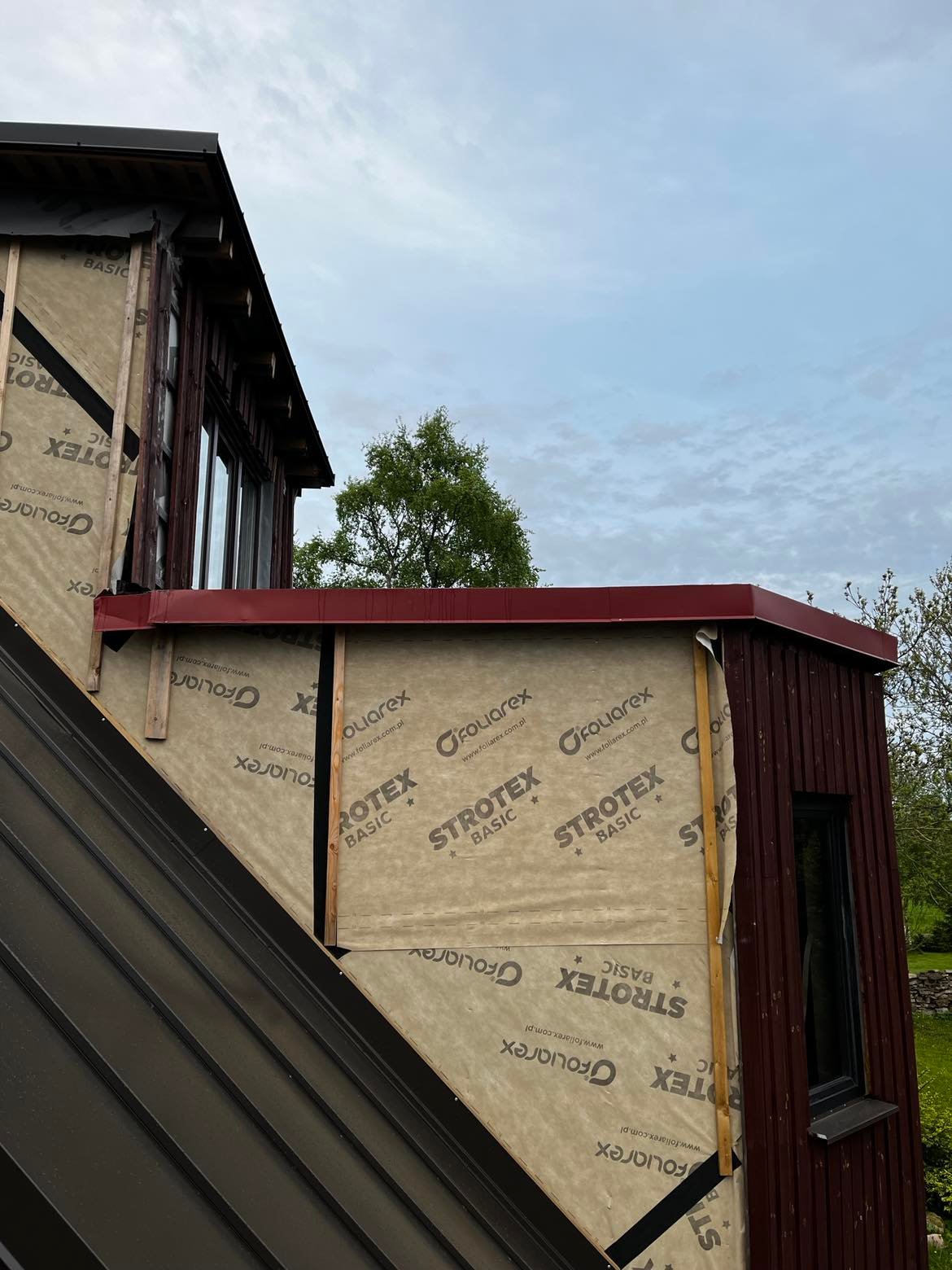 Vana katus eemaldada, uued sarikad kaldega majast eemale. Hetkel kalle maja poole, Uus OSB/alusmaterjal/tuuletõke ja uus roovitus katusekile.