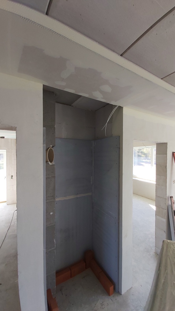 2) 80 ruutmeetrit lagede bruto pinda - selle sees ka karniisid keskel. Lauspahteldus + värv.
