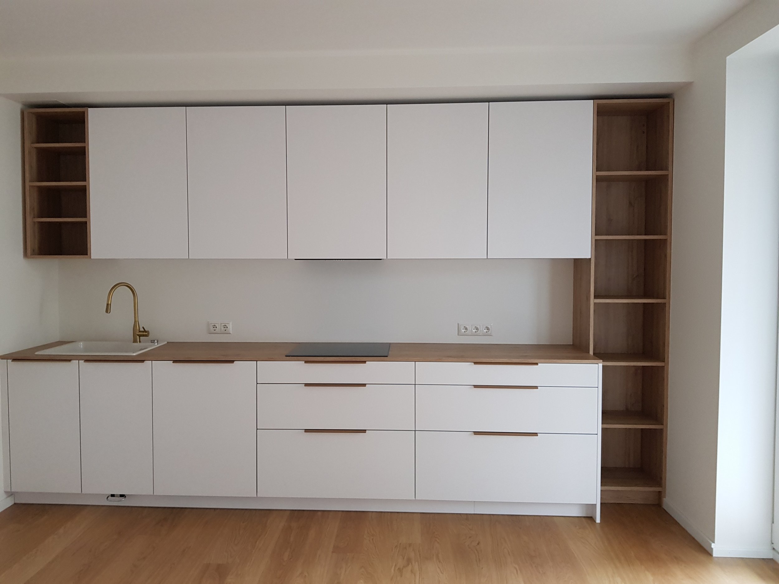 Sai paigaldatud uus köök ning köögi kappide ja tasapinna vaheline sein vajaks plaatimist. Plaaditava pinna suurus 340 x 55 cm. Pinnal on kaks pistikupesa (kahene ja kolmene).