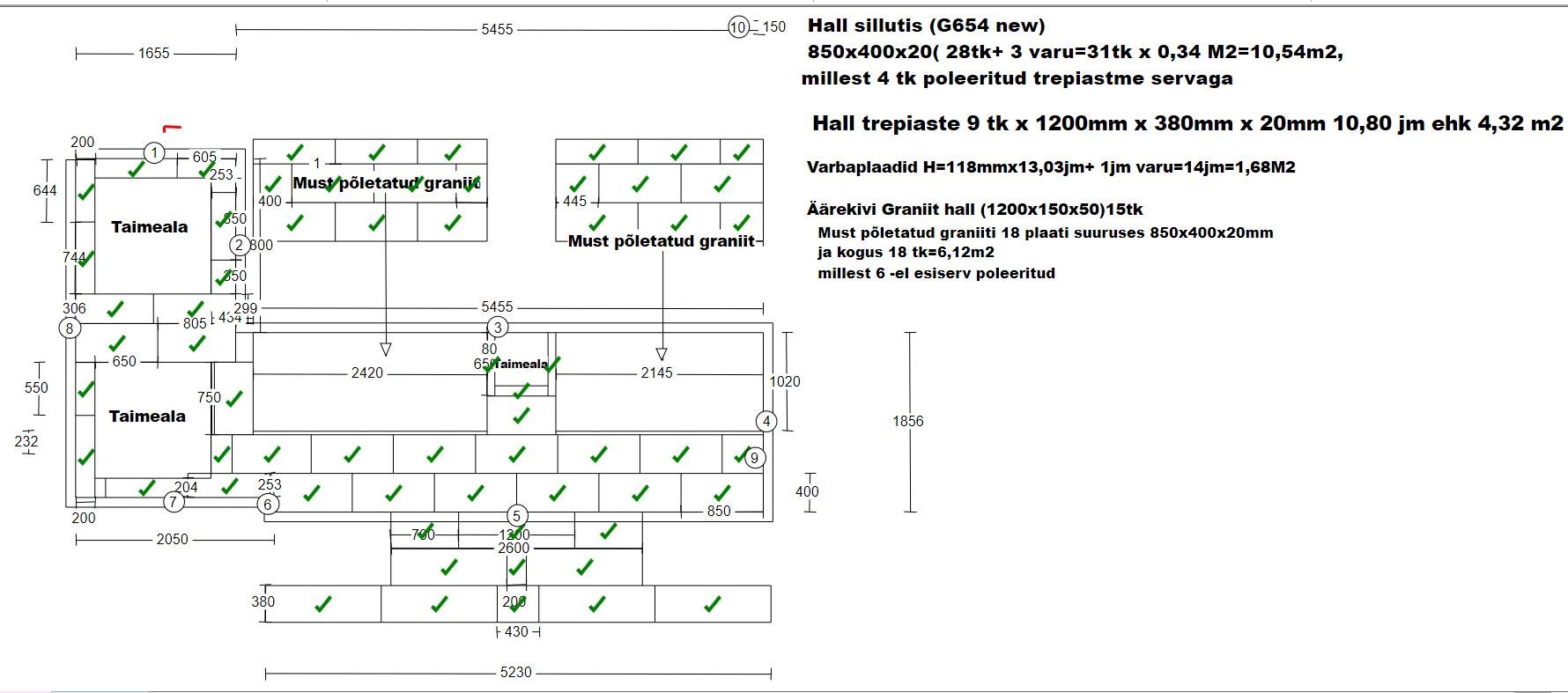 Trepi ja jalgtee graniidist plaatidega katmine. Alus on betoon Jalgtee plaadid 850x400x20. Trepil vastavalt trepiastme mõõtu., maht ca 40 M2. paigaldada ka varvaslaua kivid. Objetiga saab kohapeal tutvuda .