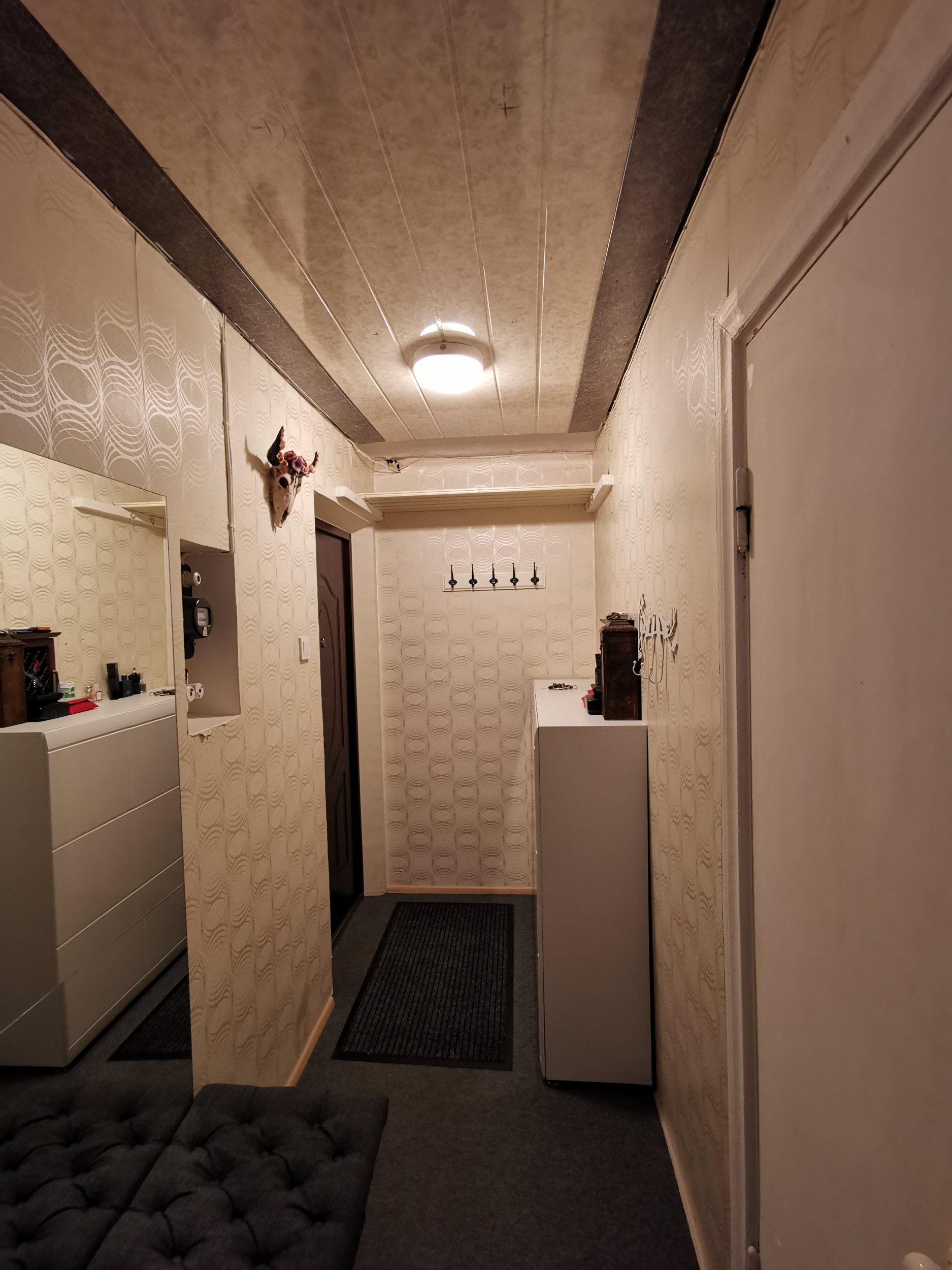 Tapeedi ja laematerjali eemaldus,põrandalt vaipkatte eemaldus,liistude eemaldus,lae lambi eemaldus,valge puitkonstruktsiooni eemaldus.
