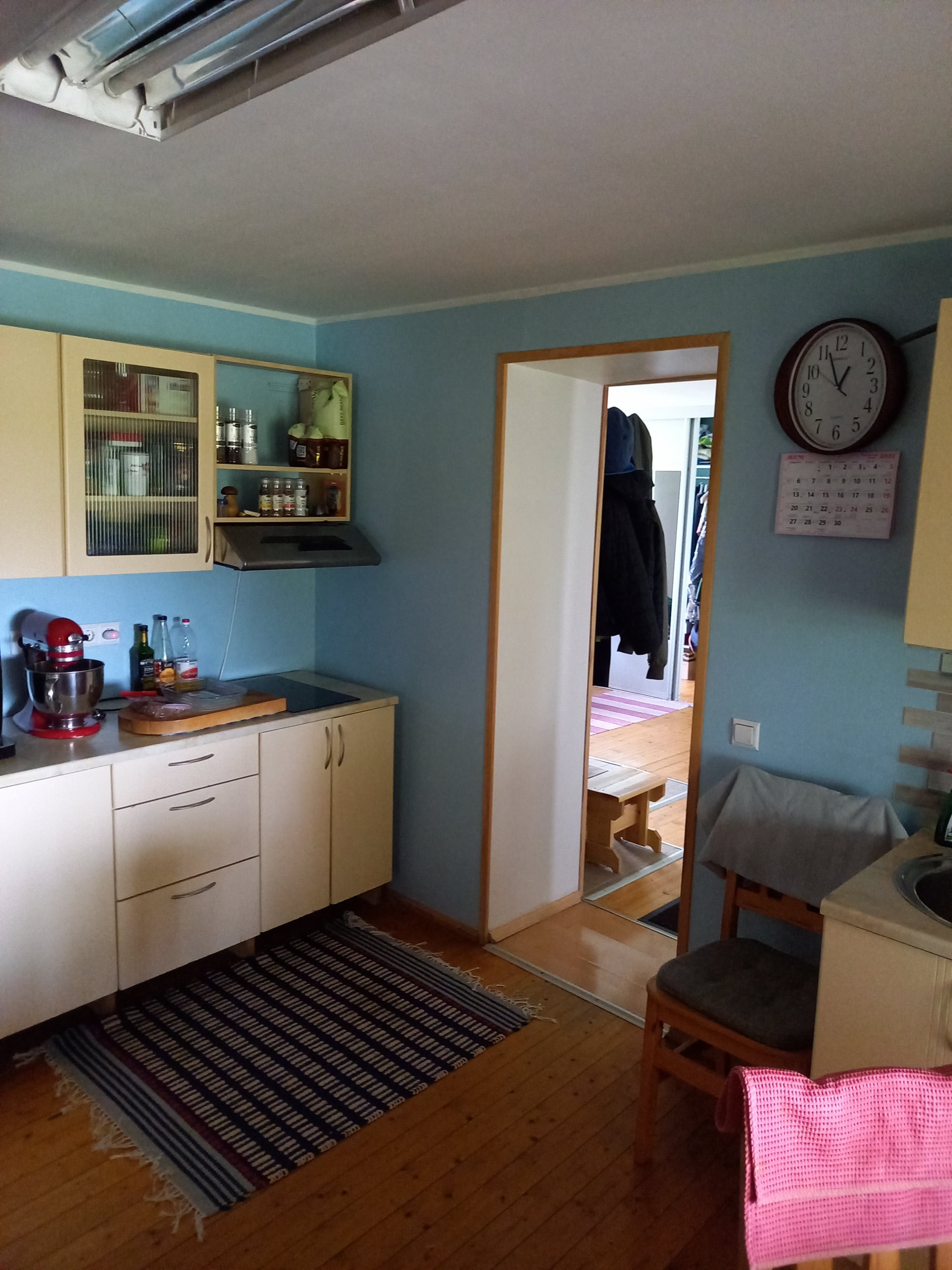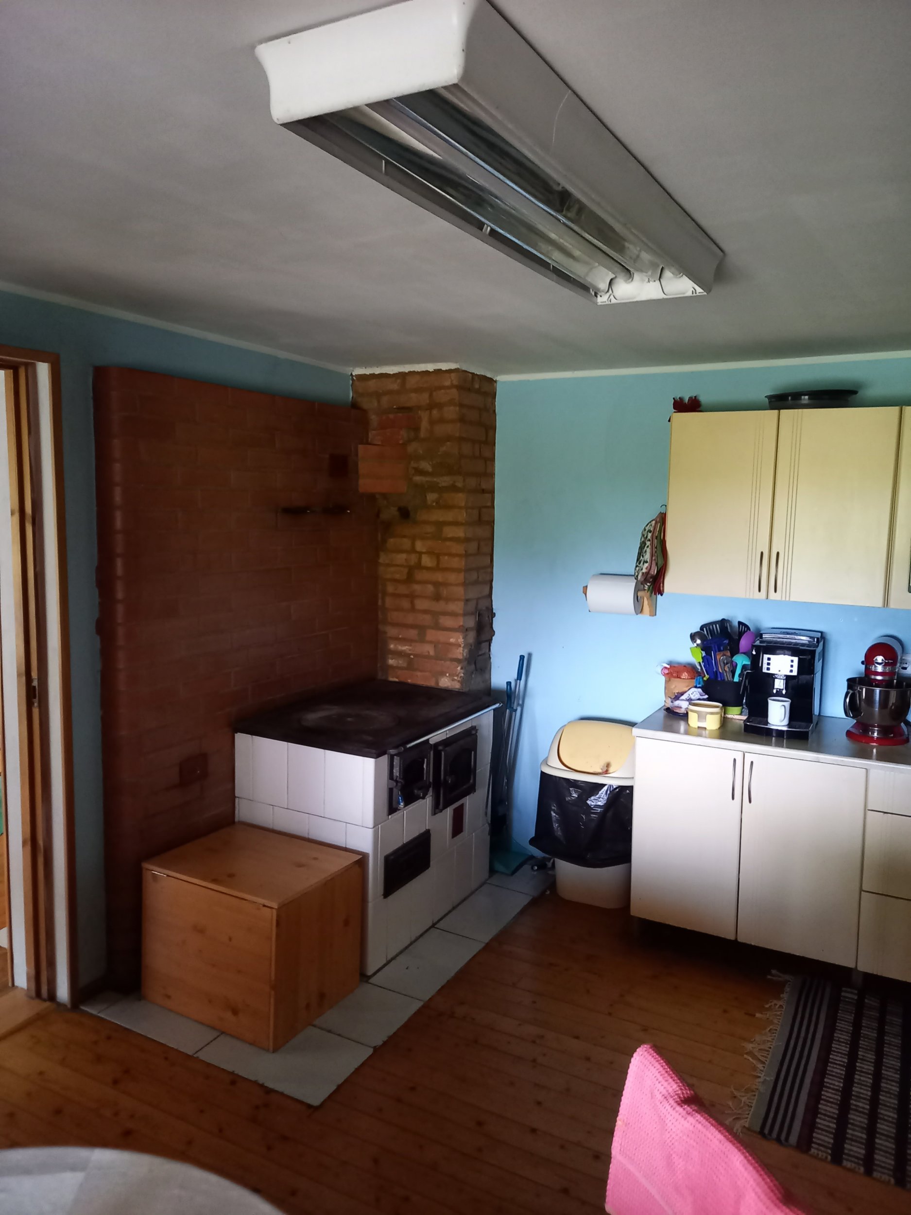 Maalritööd – seinte pahteldamine, lihvimine, värvimine. Puitpõranda viimistlus + liistude paigaldamine (põranda- ja piirdeliistud). Kubu + ühenduse loomine – mis suubuks seinatagusesse kivikorstnasse. Sisse vahetatav rasvafilter ja tõmbeventilaator (vent. võimalusel korstna otsa). Kubu alla valgustus. Ukseava parandus-viimistlustööd. Puupliidi ümbruse plaatimine. Klaasist taustseina paigaldus nii elektripliidi kui valamu taha