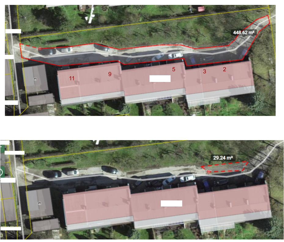 Asfalteerida võiks kogu ühistuesise pinna, mis kuulub ühistule. Eraldi sooviks kaht pakkumist. Üks praeguse asfaldi piirides. Ja teine selline, kus asfalt on tõmmatud ka teise-kolmanda korteri ees sirgelt. Pildilt paremini nähtav.