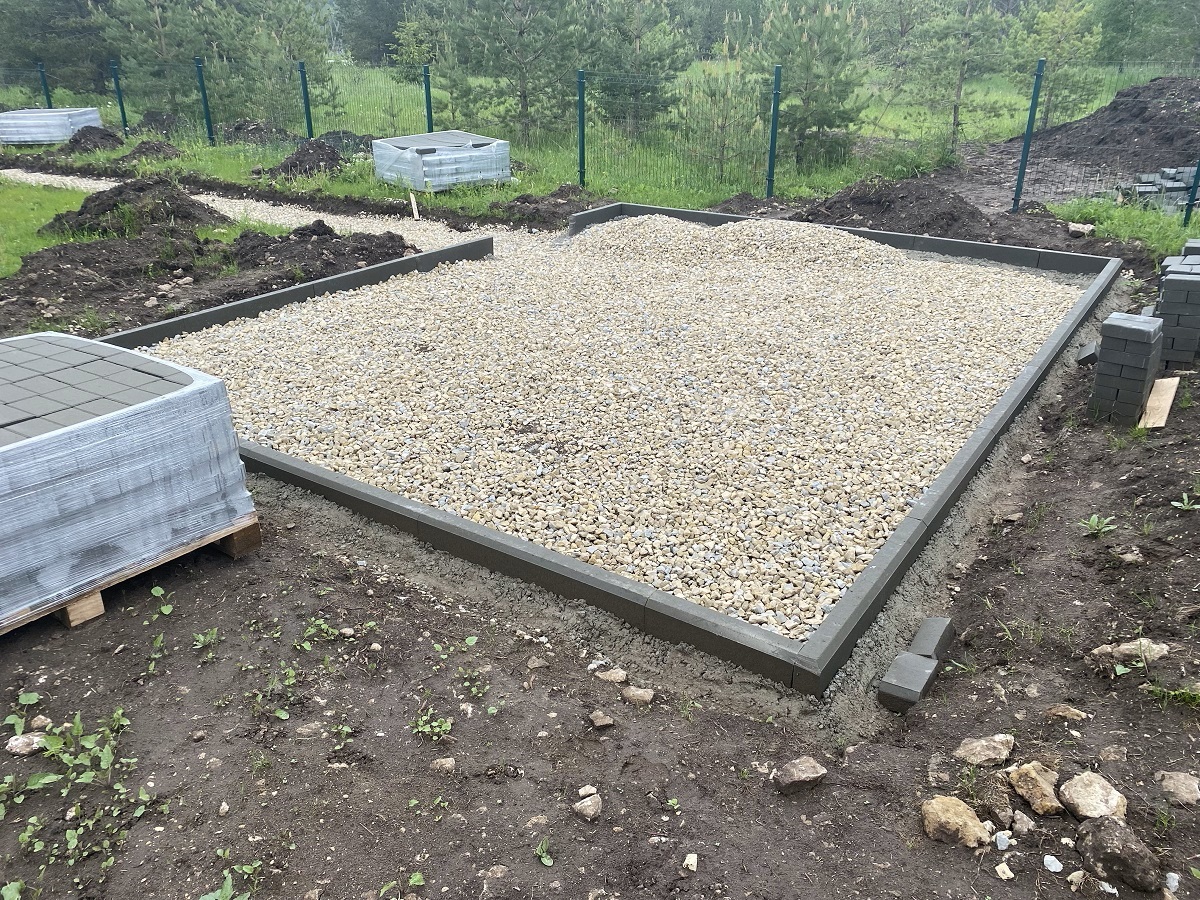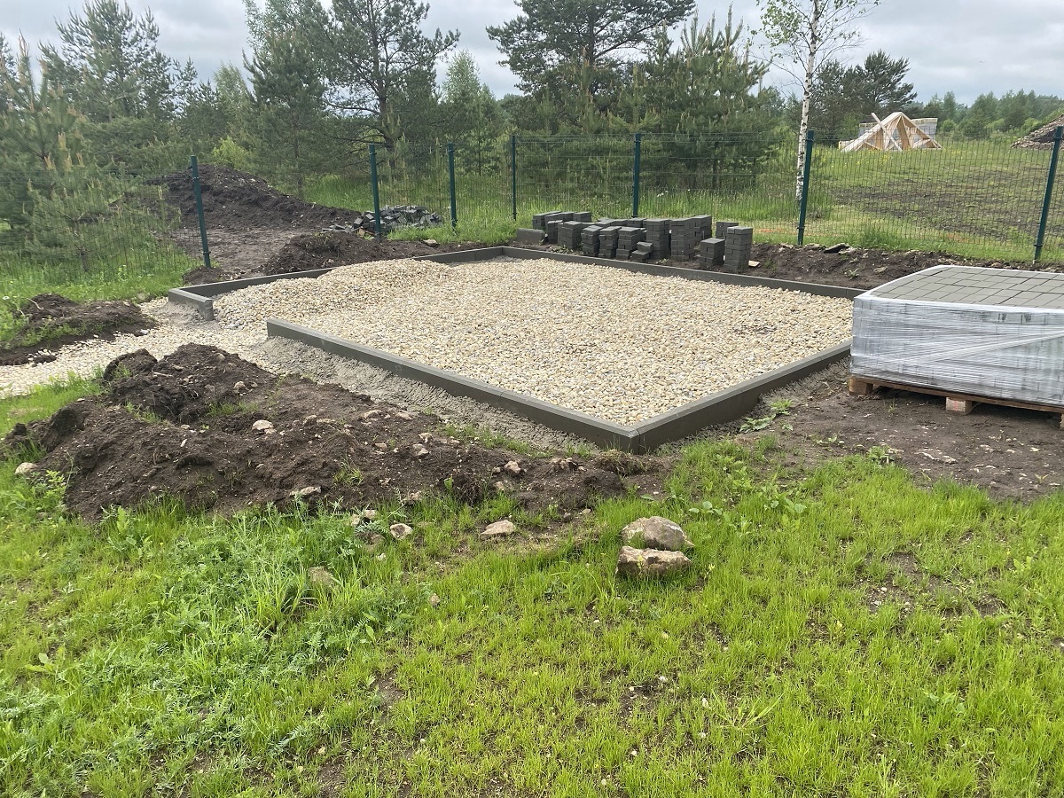 Aiamaja(kaal 1000kg) vundament tänavakiviga ( 6m*4,5m) 27m2. Tänavakivi Nunna 60 + betoon äärekivi.