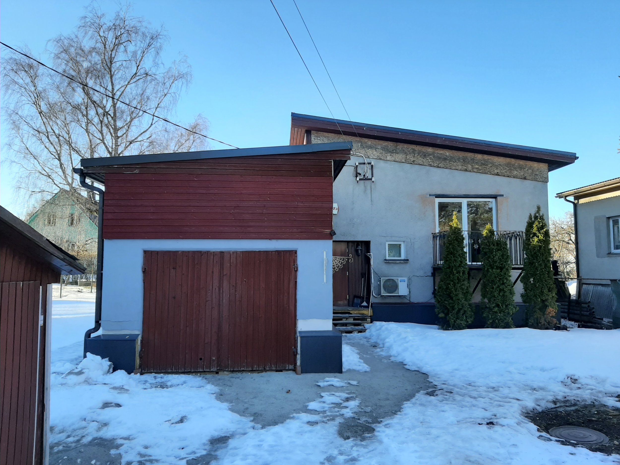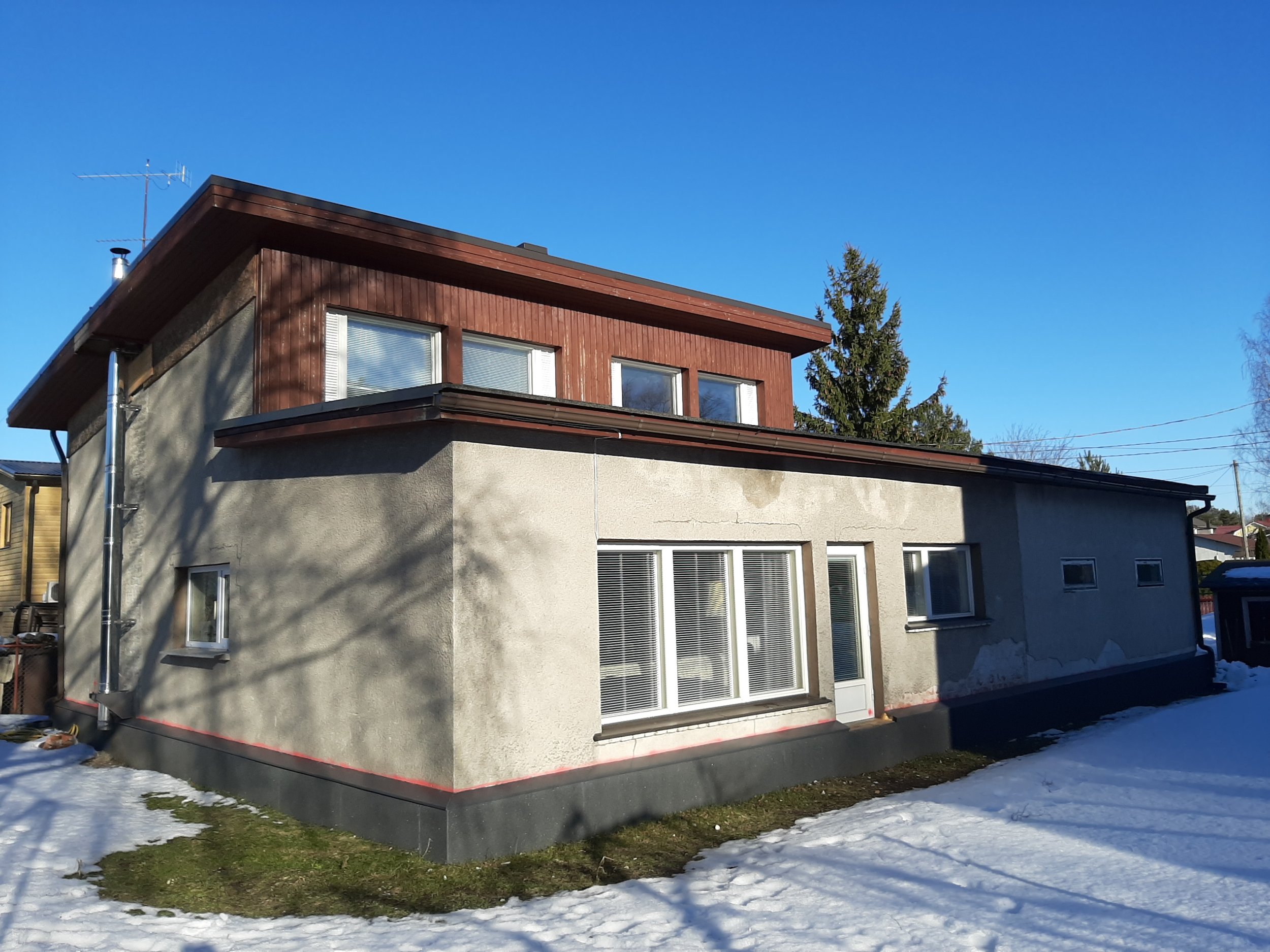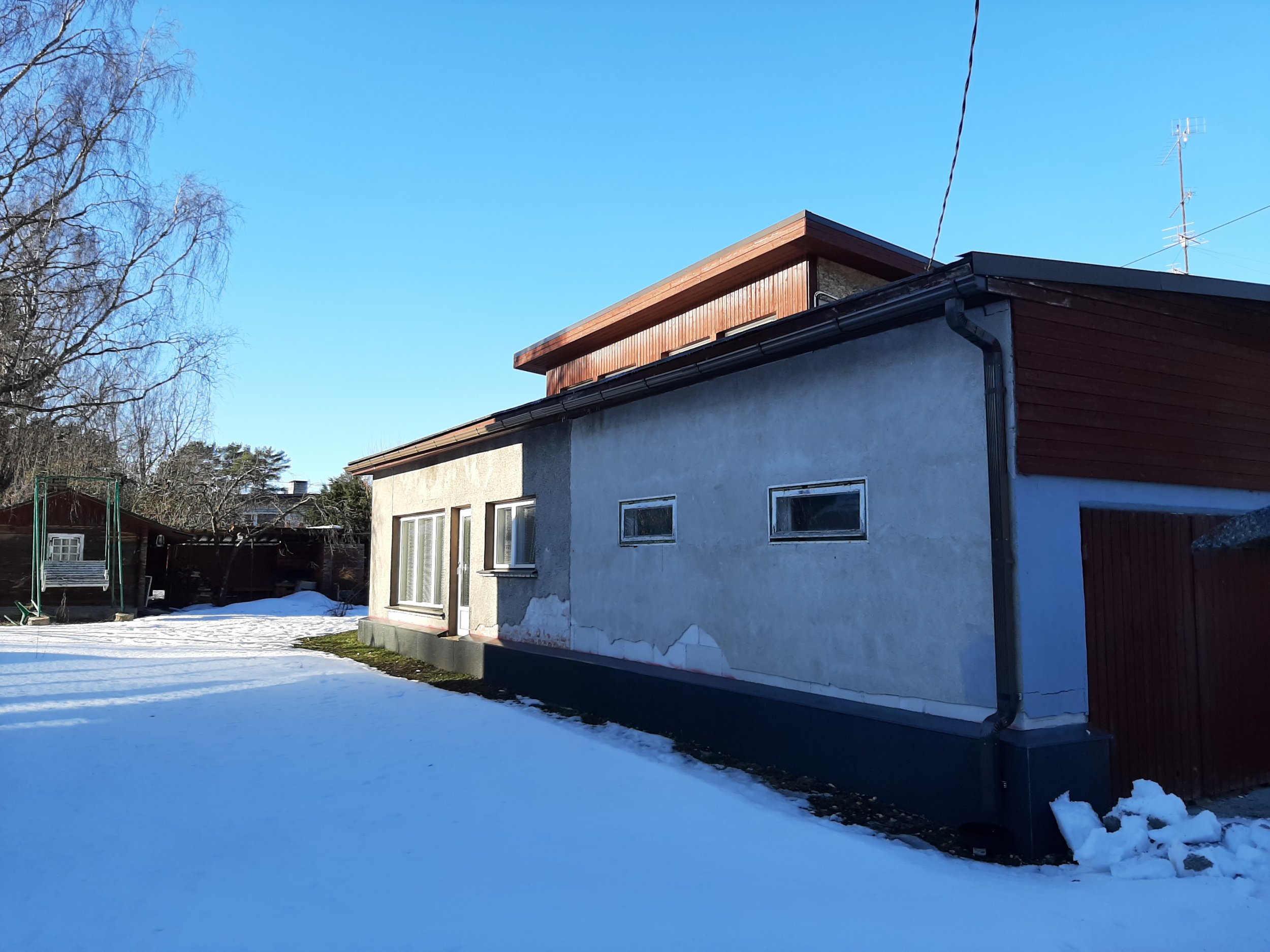 Harju seinaga eramu ja garaazi fassaadi katmine välisvoodrilauaga. Seinaks on krohvitud kärgkivi. Garaazi sein on krohvitud narva plokk. Eramu aasast 1976. Seina pinda on ümmarguselt 125 ruutmeetrit (sellest on juba akende ja uste avad maha arvatud).