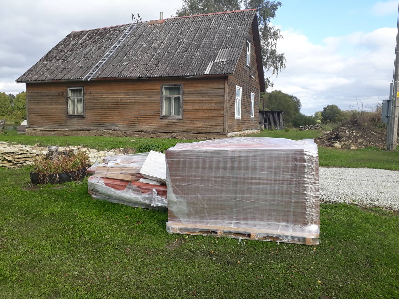 Eterniit, kruvid, plekid ja puit materjal olemas. Katuse pindala ca 160 m2.