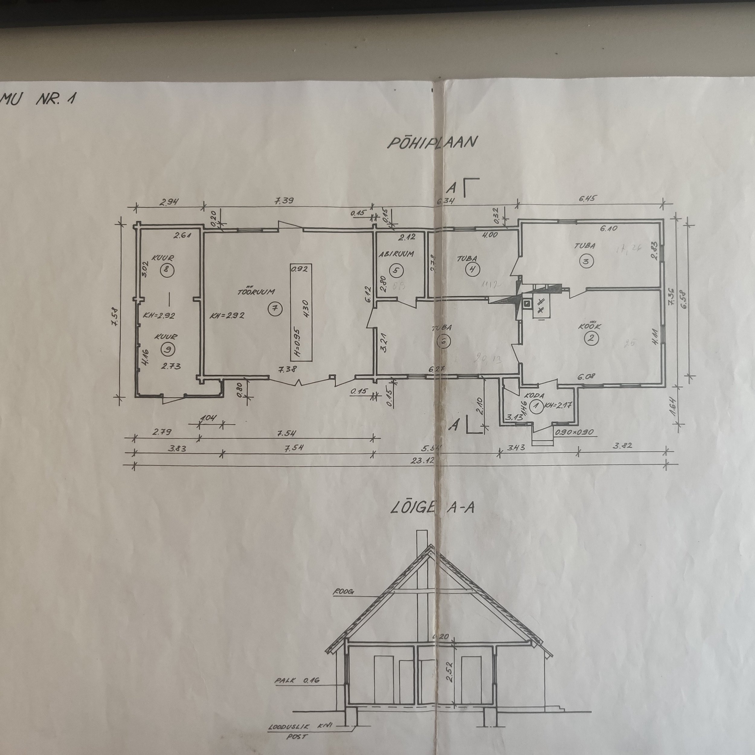Vana taluhoone, mis on ehitatud 1905 aastal vajab renoveerimiseks ehitusprojekti. Tegemist on vana palkmajaga mis vajab restaureerimist, majale on juba paigaldatud uus katus, aga ülejäänud tööd on tegemata. Maja esimese korruse pind on 147.2rm, Hetkel teist korrust välja ehitatud ei ole.