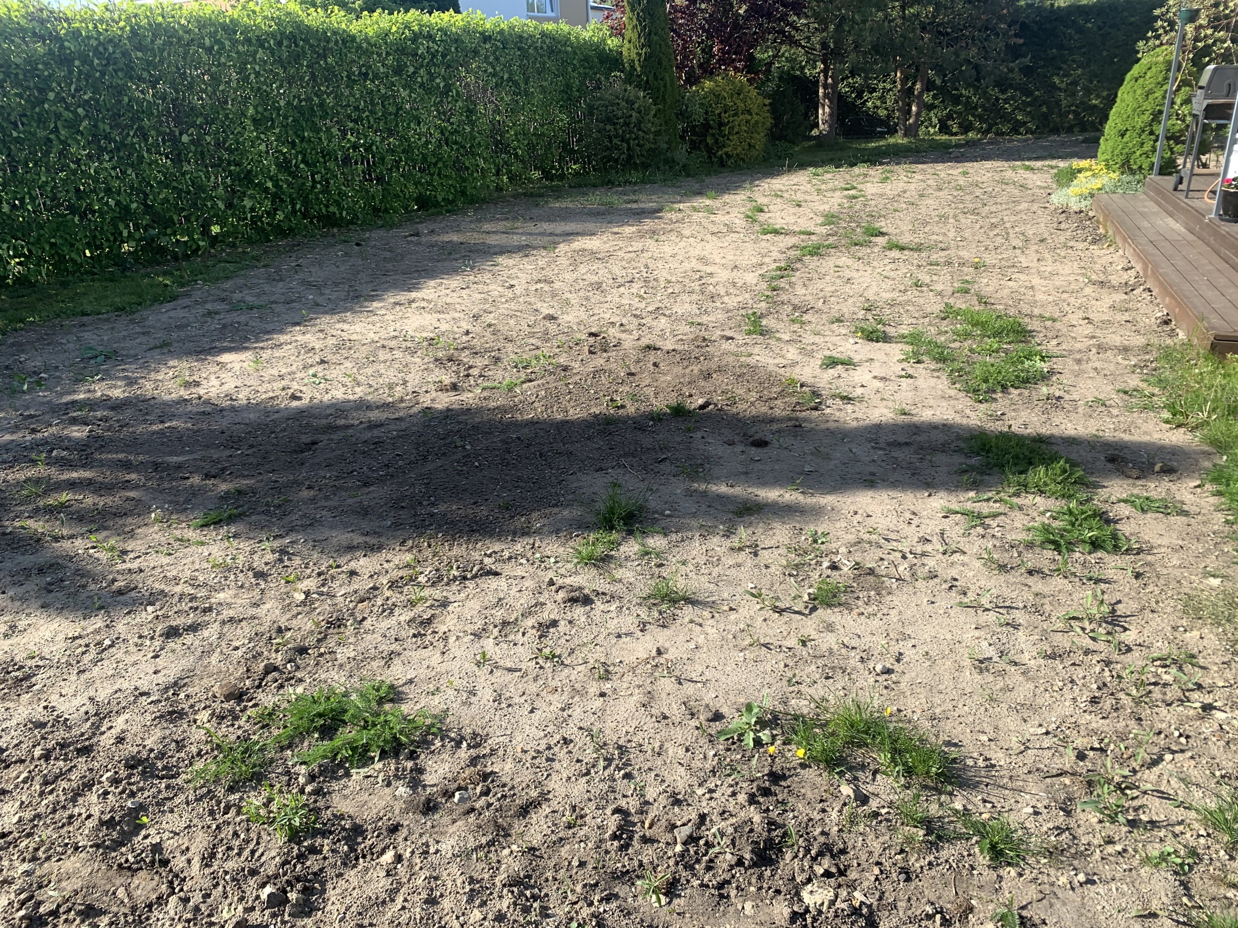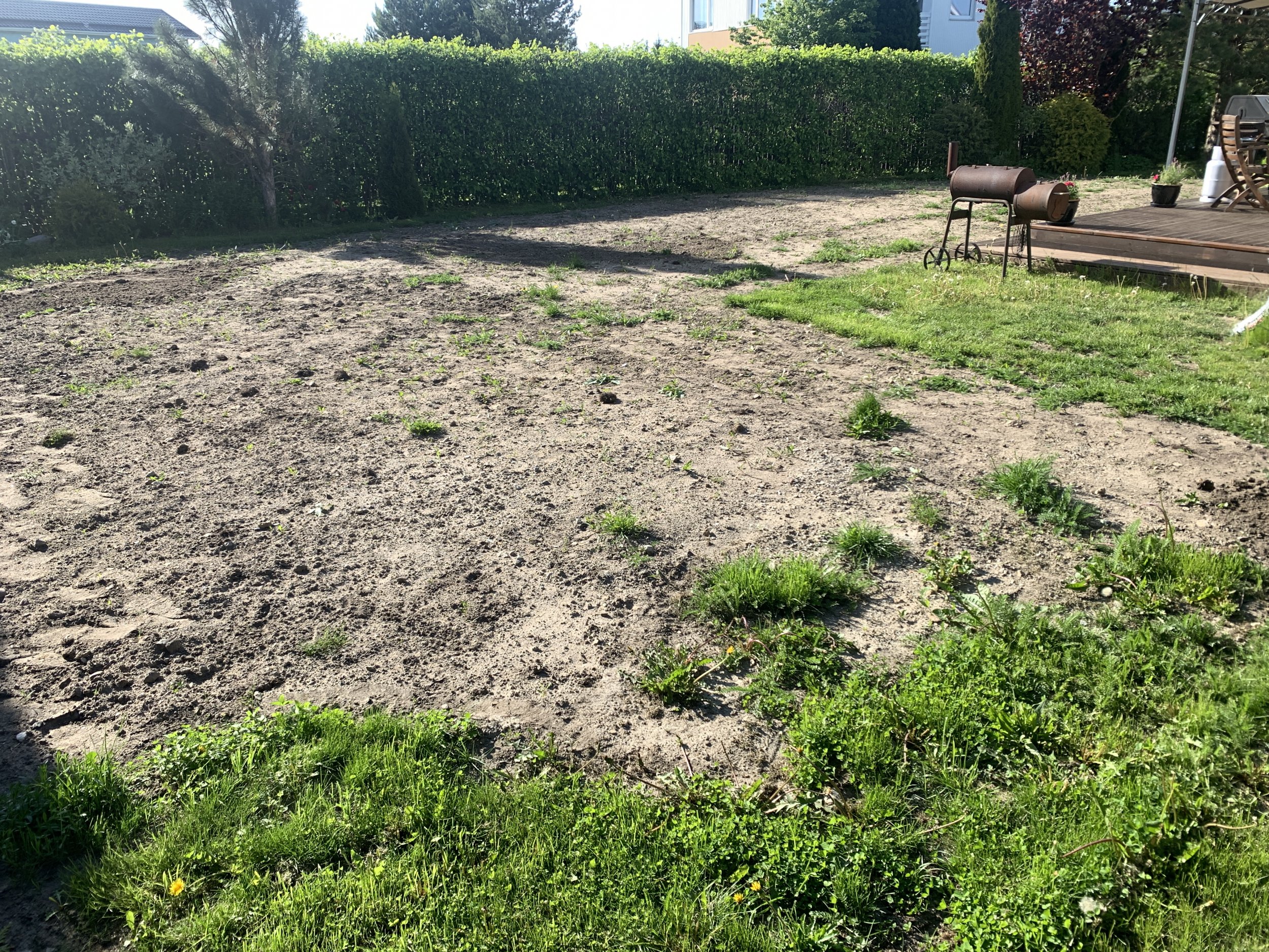 Tere. Pakkumises pealmise kihi koorimine ja kooritud pinnase äravedu. Sõelutud mulla toomine, tasandamine ja muru külvamine käsitsi (tartus toodetud muru). Ajaliselt ca nädal aega.