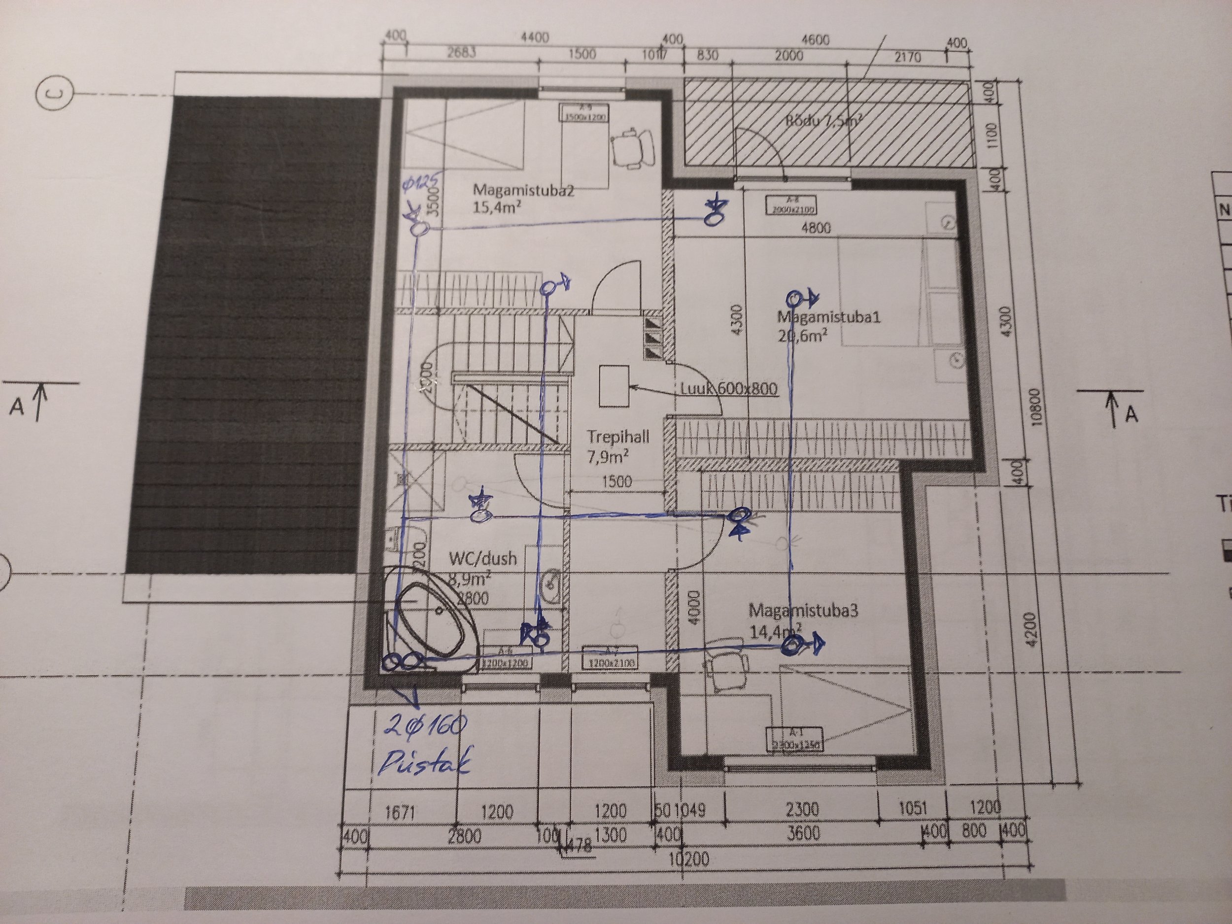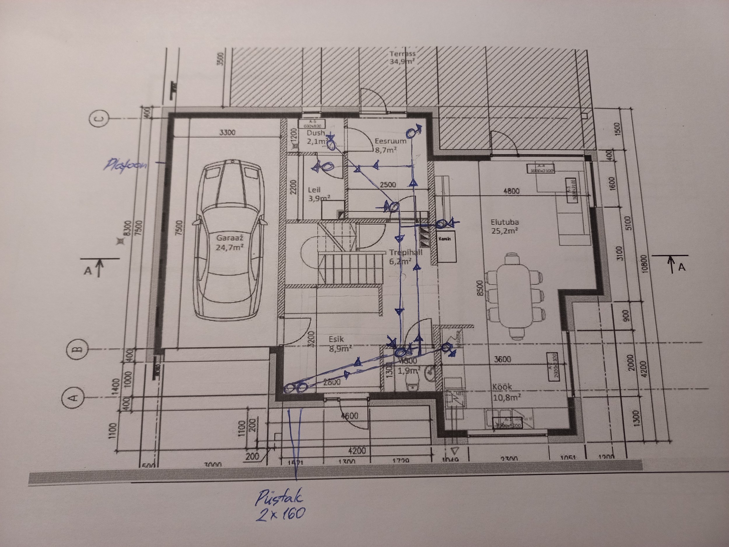 Soovin leida Tartu linnas asuvale ehitusjärgus elamule ventilatsioonitorustiku paigaldajat. Elamu on kahekordne, keldriga, õõnespaneelidest vahelagedega. Püstakute läbiviigud olemas Keldrisse tuleb soojustagastuseagregaat. Esimesel korrusel tuleks kavandatava ripplae alt vedada torud köök-elutuppa, wc-sse ja saunaruumidesse. Teisel korrusel katusefermide alt kolme magamistuppa ja vannituppa.