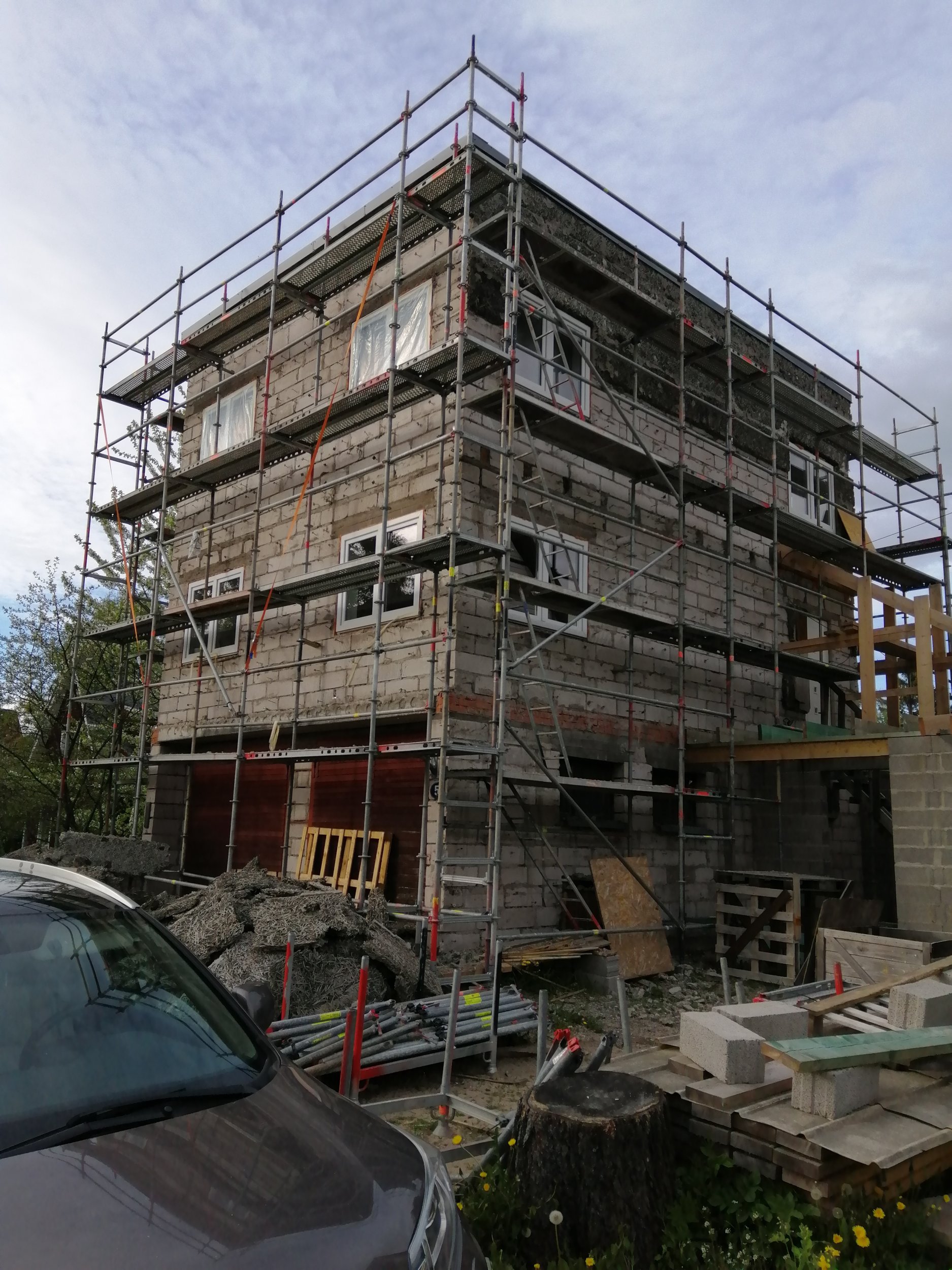 Pildil näha ka hetkel rajatav juurdeehitus. Seda ei ole vaja hinnapakkumisse lisada. Hetkel vaja eps-iga katta ja krohvida vaid ristküliku kujuline maja. EPS60 Silver 100mm 1000x600 endal olemas. Ülejäänud materjal töö tegija poolt. Tellingud ümber maja juba paigaldatud. Töödega ei pea alustama kohe, sest tellingud jäävad püsti sügiseni. Vana tep plaadi võtan ise maha.