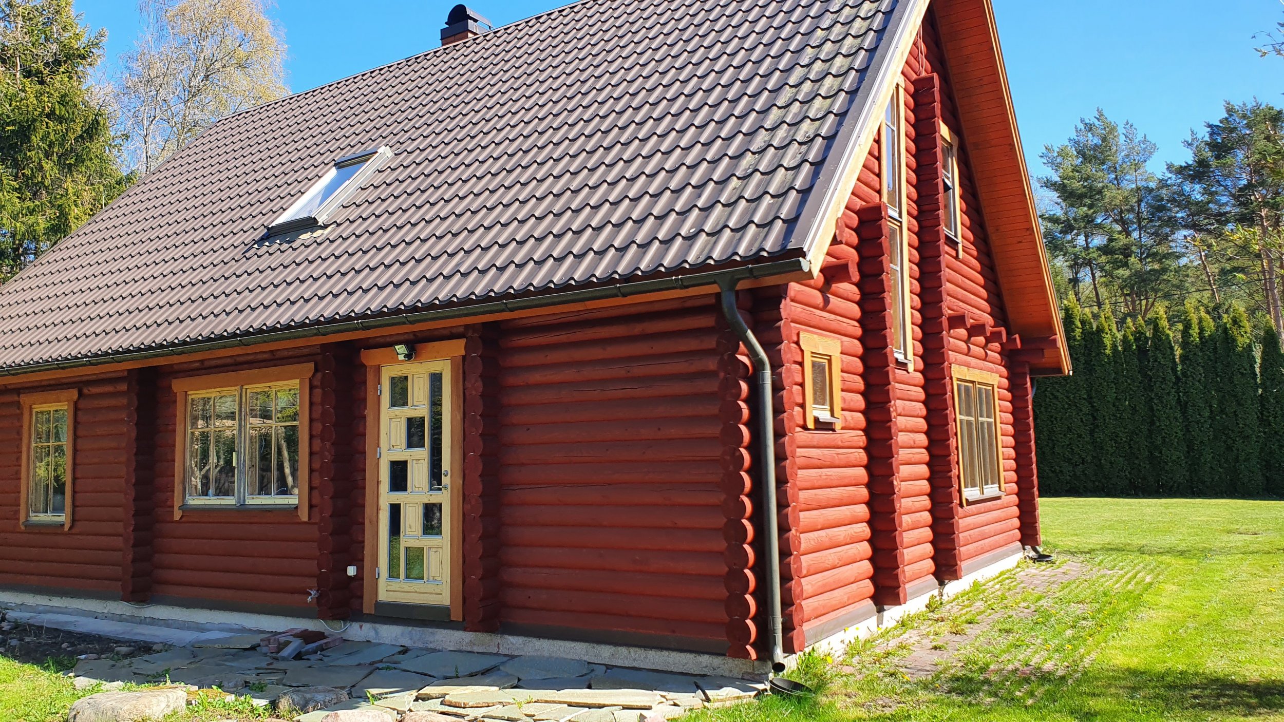 Väljast tuleb uus soojustatud puit fassad nii, et palke ei jää enam näha.