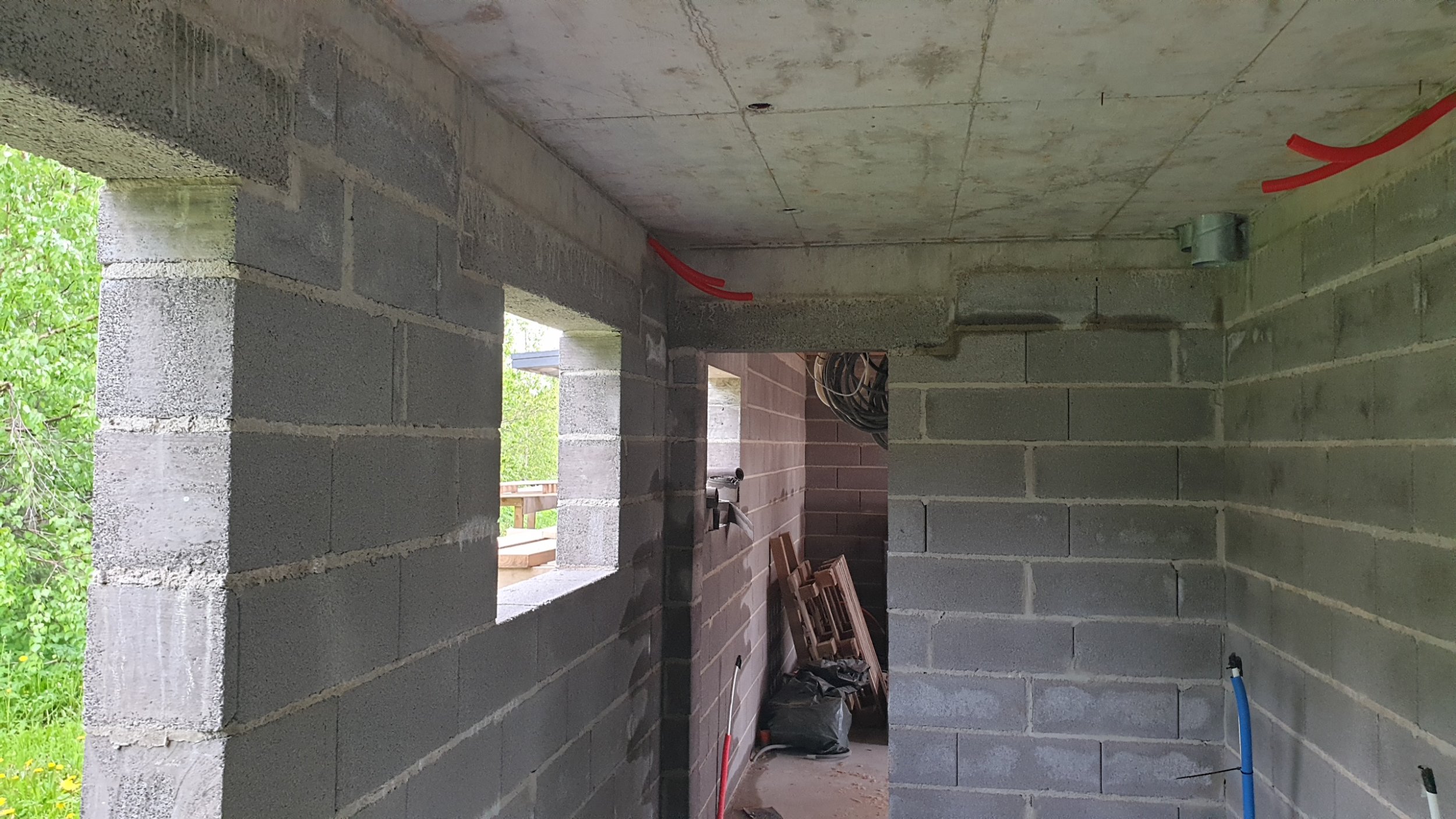 1. korrusel vaja puurida 2x8 ava läbimõõduga 125..315 mm läbi FIBO 5 200 mm(kandvad seinad, vaheseinad ladumata. Projektist võib teha kõrvalekaldeid, kui eesmärk ja kvaliteet ei muutu. Kaaluda võib leiliruumi aluste torude soojustamise vajadust, kuna ripplagi soojustatakse eraldi.