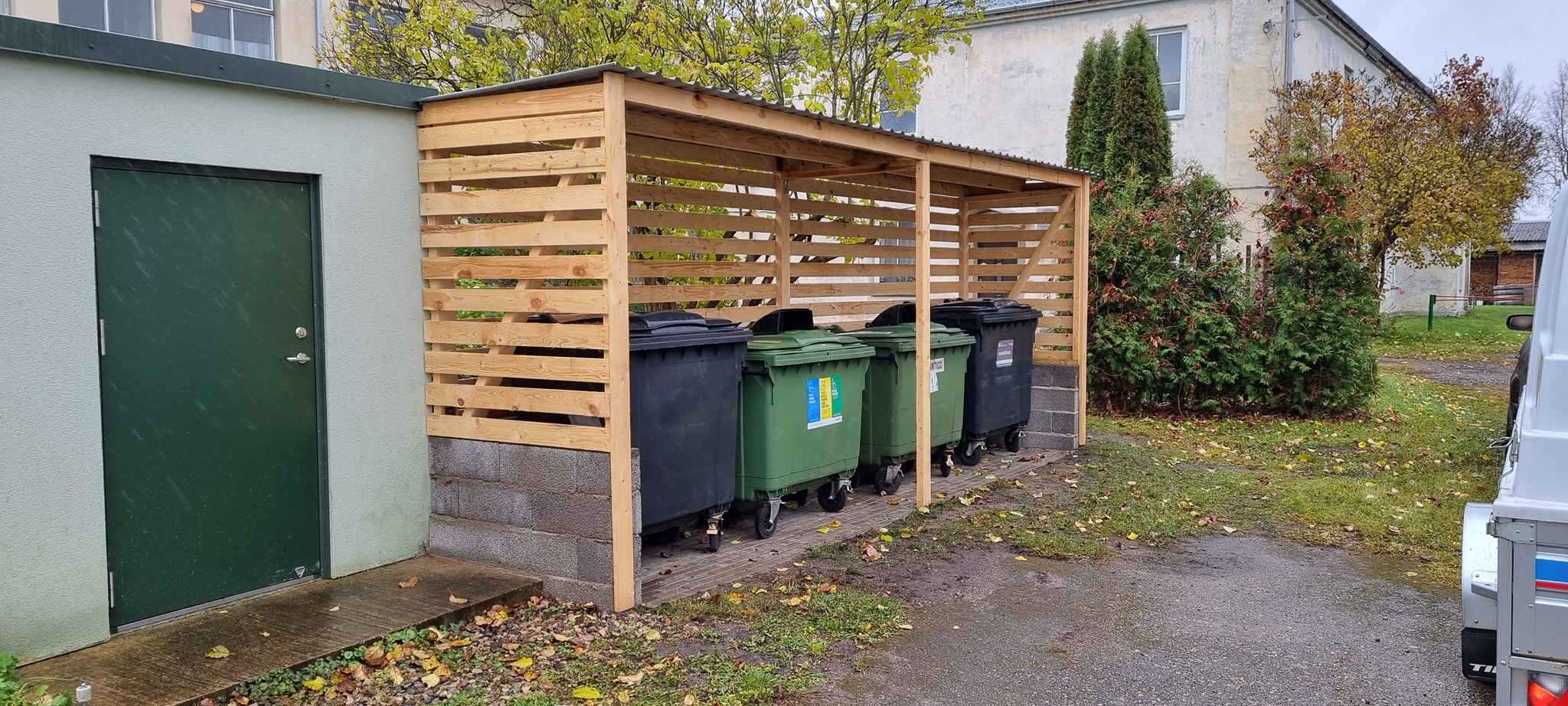 Katus võiks olla tahapoole kaldes, et vihmavesi jookseks kuuri taha. Võib paigaldada ka vihmaverenni, aga ei ole oluline (pakkumises välja tuua eraldi).