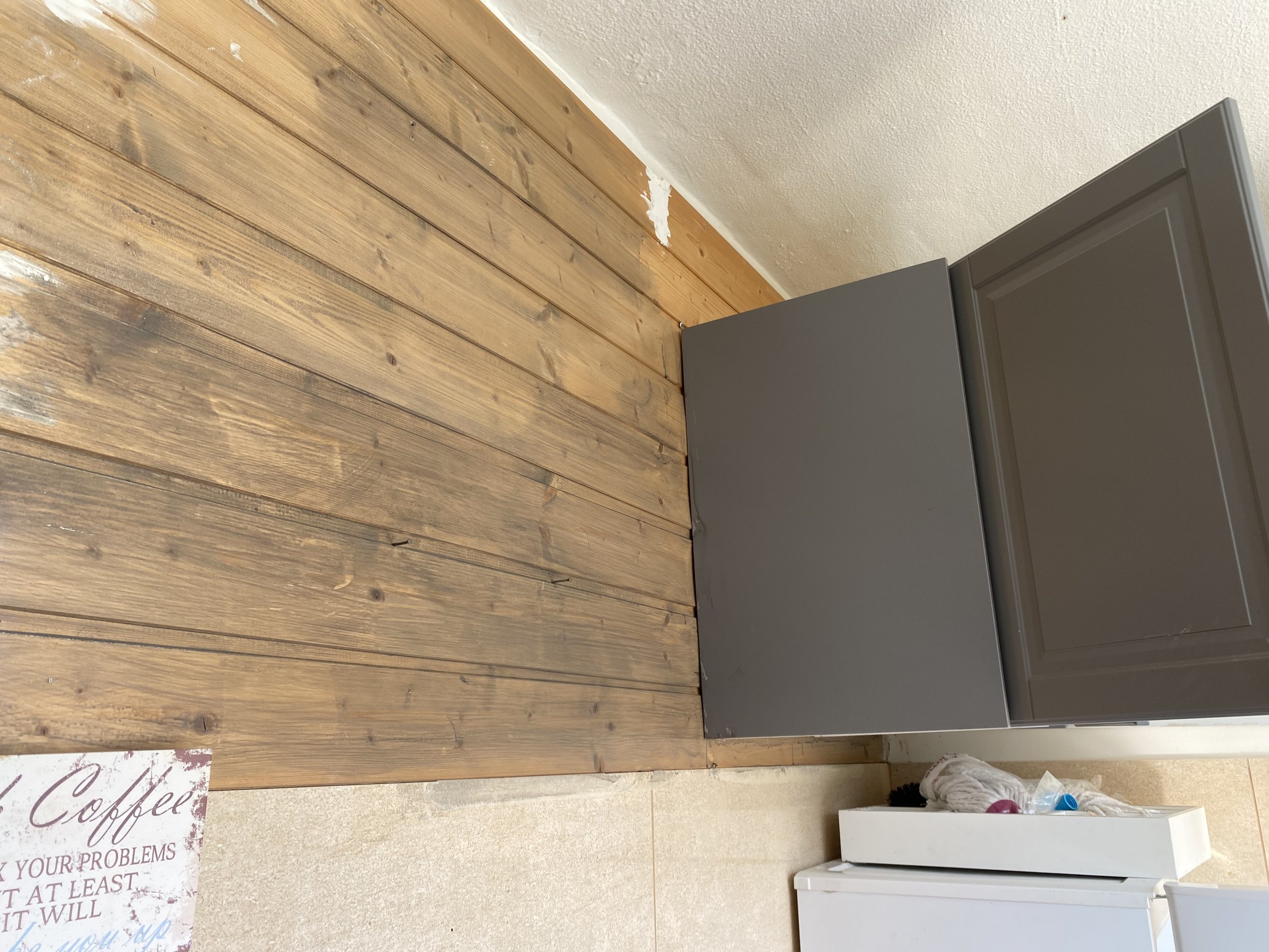 Võtta maha seinakapid (IKEA) ning paigaldada laudis kindlamalt seina külge. Seejärel laudis värvida.