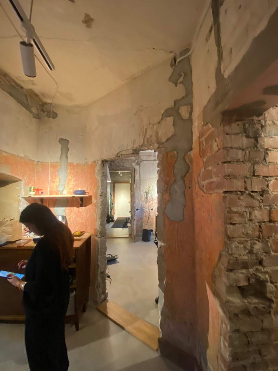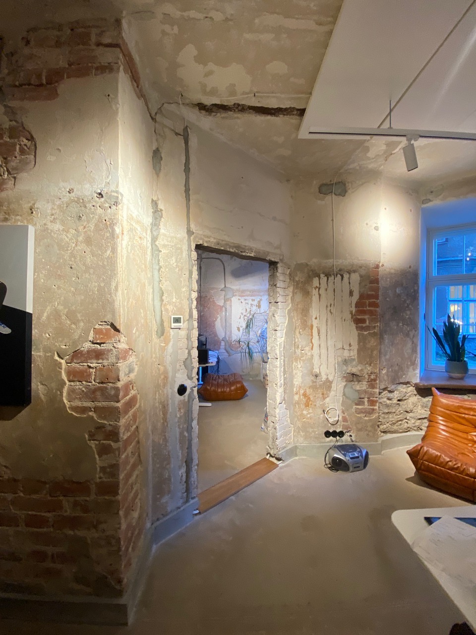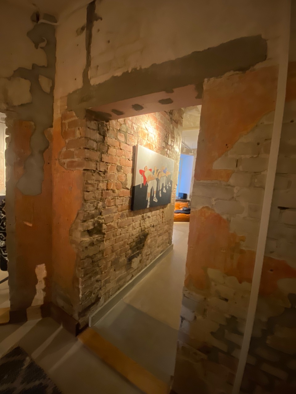 3tk siseukse paigaldamine vanade tellisseinade sisse, uksepõskede viimistlemine krohvi ja värviga.