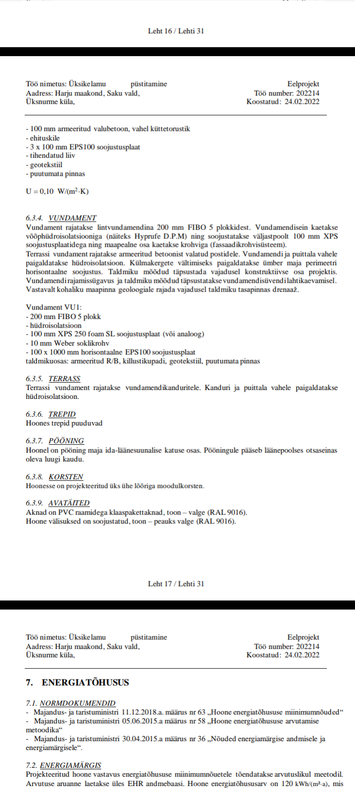 | Ehitusmaterjalid: | Töö tegija poolt |