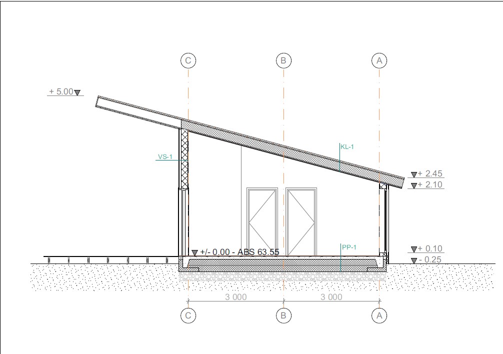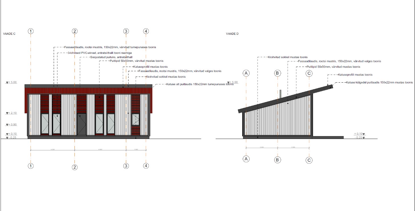 Katus trapetsprofiil 15kraadise kaldega ning kaks katuseakent.