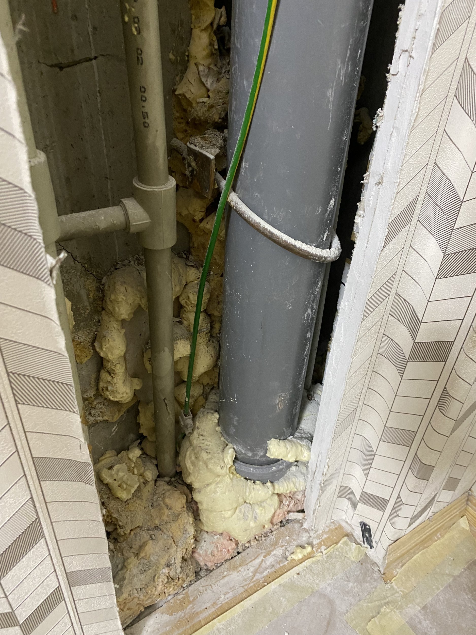 Püstaku toru vajab liigutamist allapoole mõned sentimeetrid, et saaksime dušinurgast alates paigaldada äravoolutoru vajaliku nurga alla.