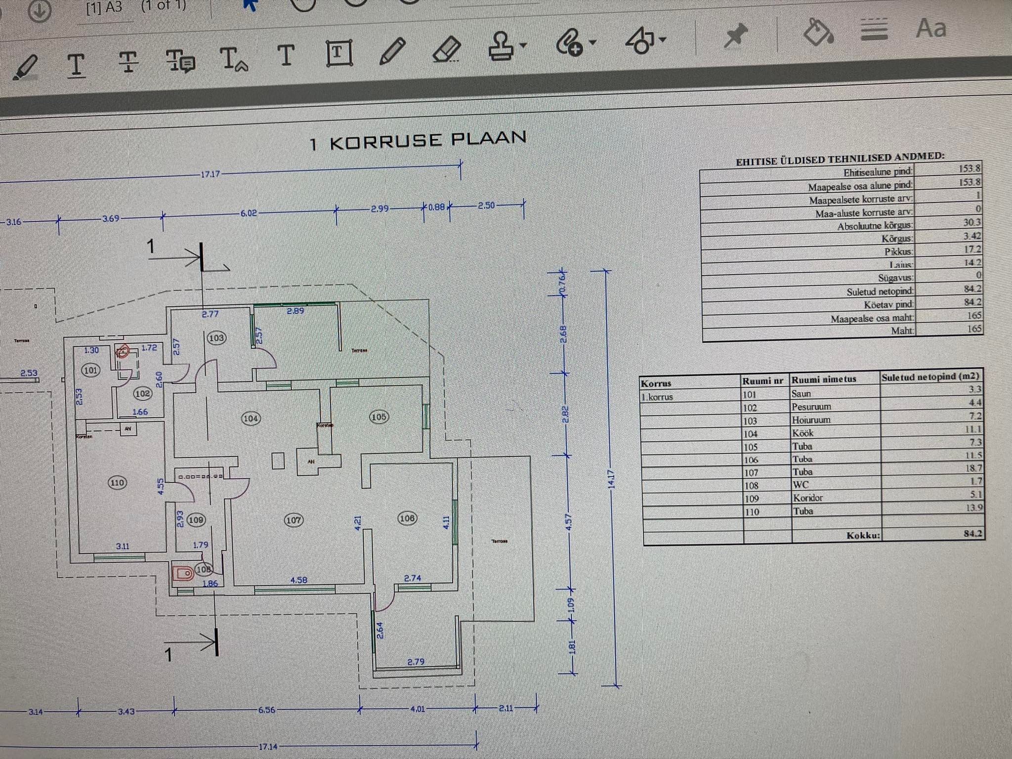 Maapealse osa alune pind: 153,8