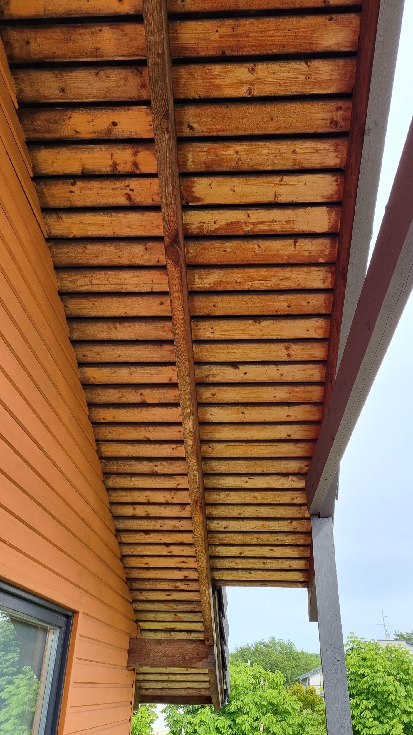 Üle peitsida või värvida katuse räästakastide lauad. Kolmveerand mahust saab teha kas tellingute või kõrge redeliga. Veerand arvatavasti vajab lifti-tõstukit.