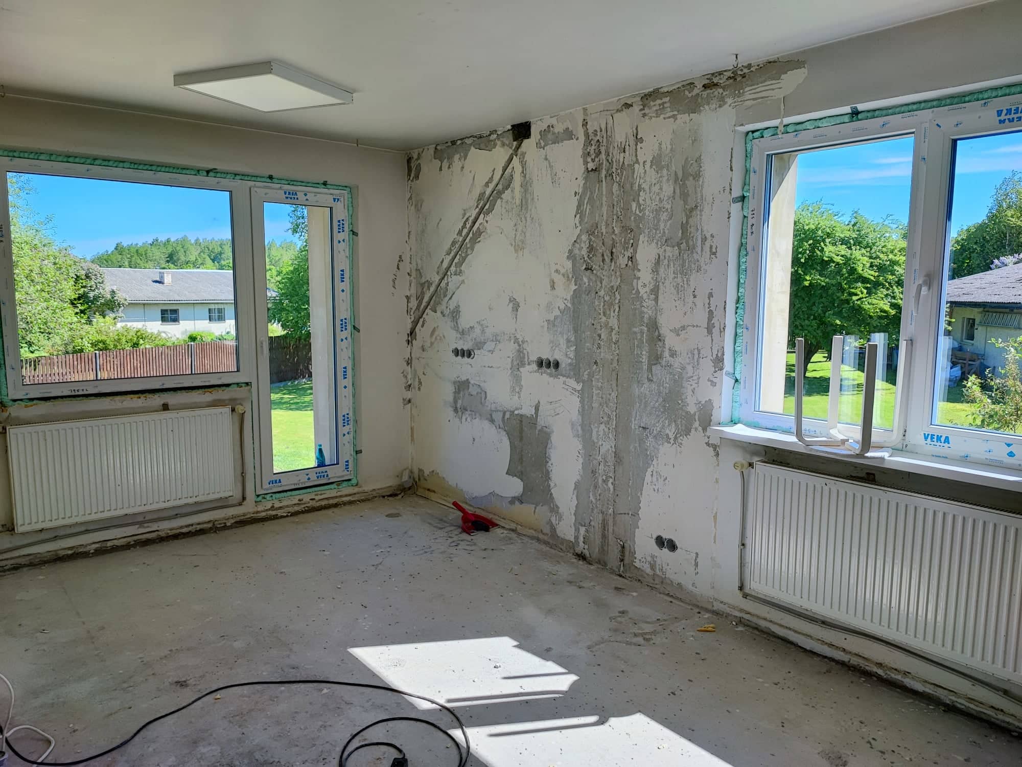 Tööd teostab pika kogemusega maaler.Hind sisaldab:Kaabli ja toru soonte täitmist,alumiinum nurkade paigaldus aknapaledele,pahteldust 2-3 kihis(olenevalt vajadusele),kruntimist ja lõppvärvismist 2 kihis.Tööde aeg ca nädal.